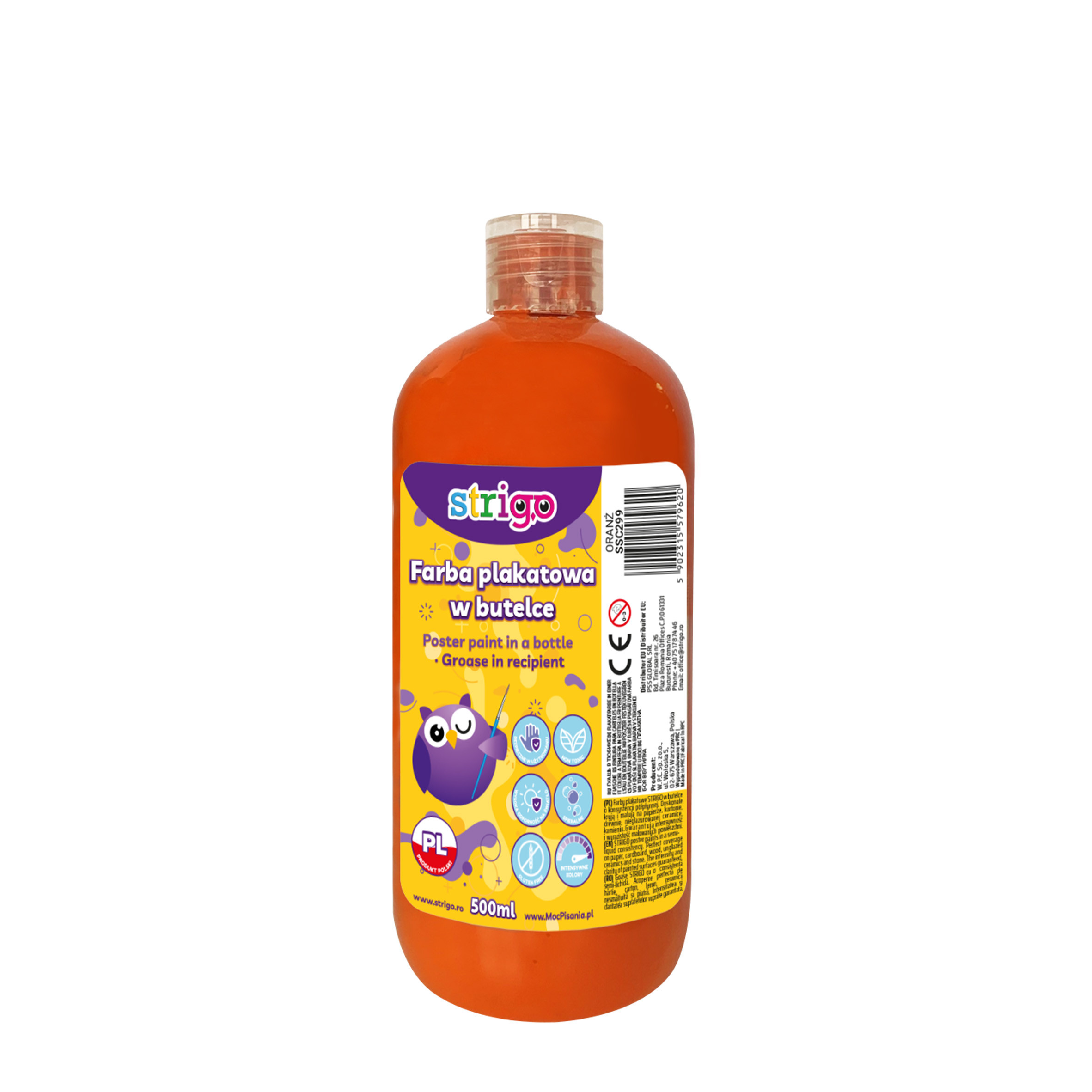 Vopseaua guașă Strigo SSC301 în nuanță portocaliu este alegerea ideală pentru proiecte artistice, activități școlare sau hobby-uri creative.