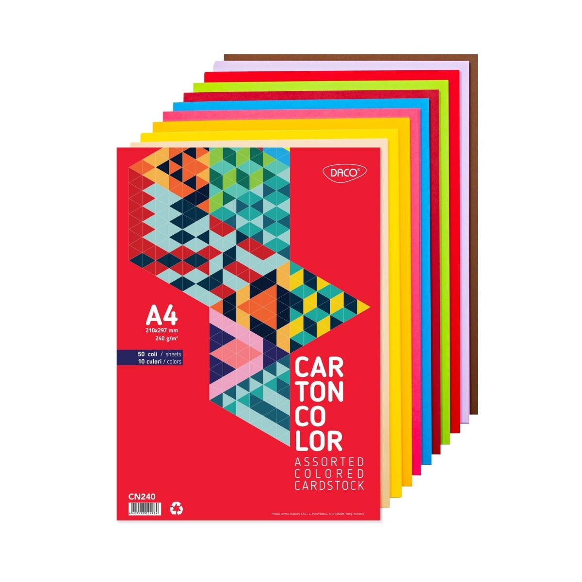Carton color A4 DACO CN240, 240 g/mp, 50 coli, 10 culori