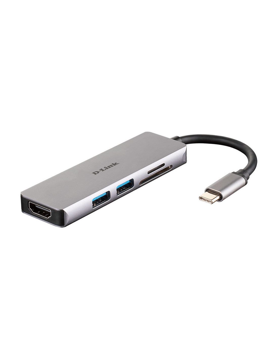 HUB extern D-LINK, porturi SD/microSD Dual Card Reader x 1, USB 3.0 x 2, HDMI x 1, conectare prin USB Type C, cablu 11.5 cm, arg