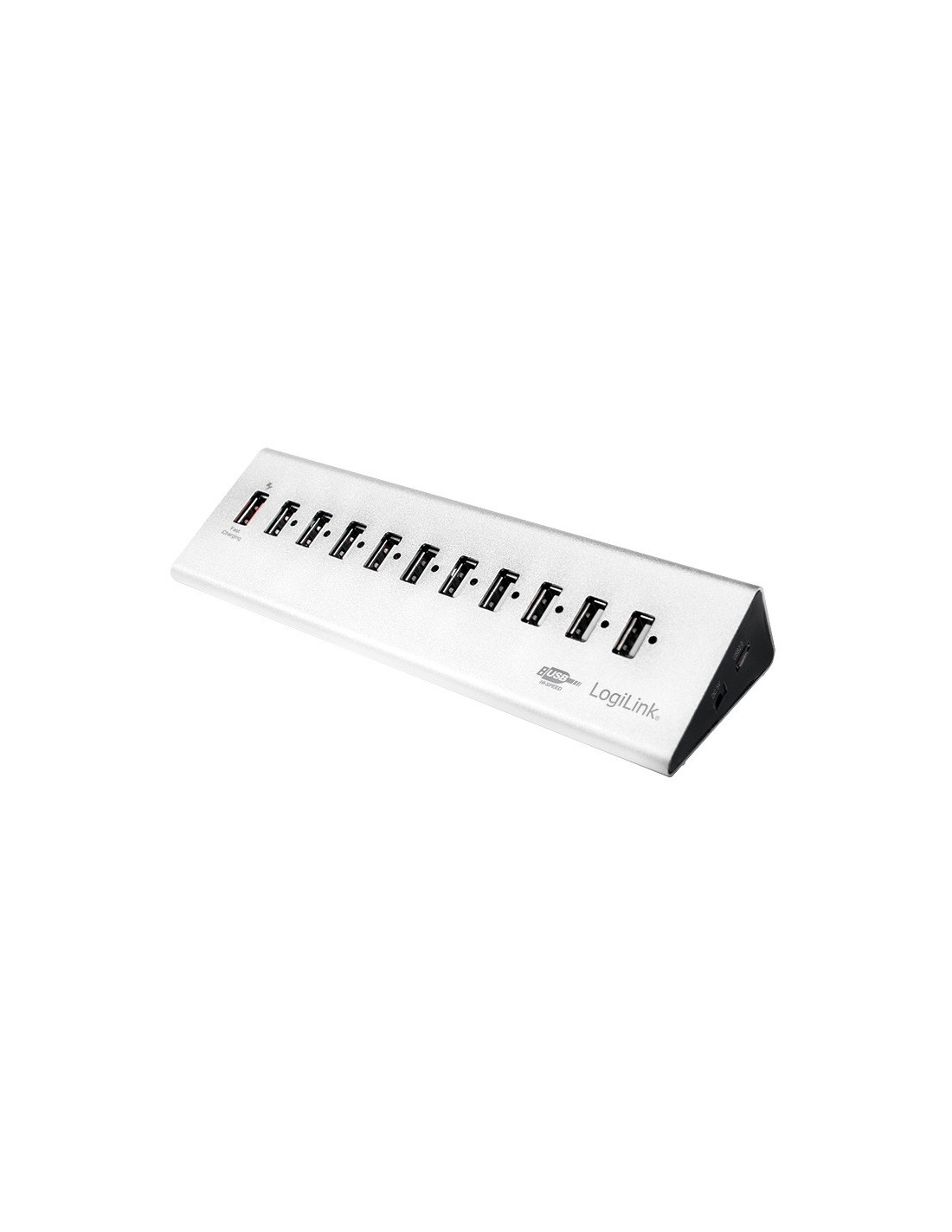 HUB extern LOGILINK, porturi USB: USB 2.0 x 10, Fast Charging Port, conectare prin USB 2.0, alimentare retea 220 V, argintiu, "U