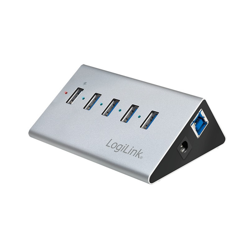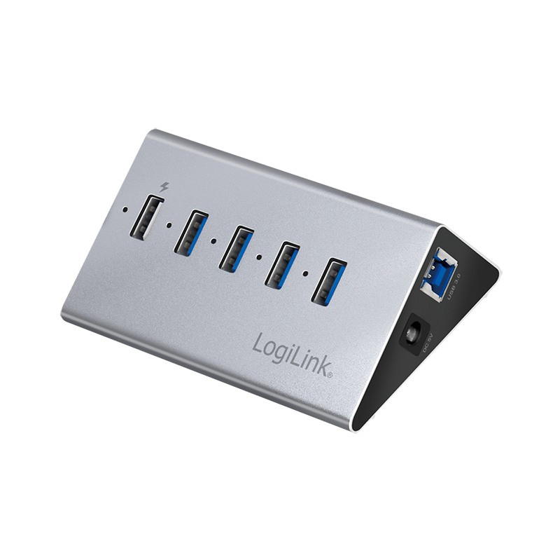 HUB extern LOGILINK, porturi USB: USB 3.0 x 4, Fast Charging x 1, conectare prin USB 3.0, alimentare retea 220 V, argintiu, "UA0227" (include TV 0.8lei)