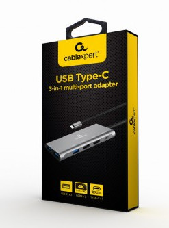 DOCKING Station Gembird universal, conectare PC USB Type C, USB-C x 1, USB-A 3.1 x 3, porturi video HDMI x 2, PD 60 W, argintiu, "A-CM-COMBO3-01" (include TV 0.18lei)