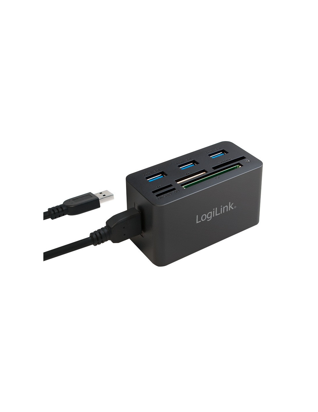 HUB extern LOGILINK, porturi USB: USB 3.0 x 3, conectare prin USB 3.0, alte porturi: SD, MicroSD, M2, MS Duo/Pro, CF, negru, "CR