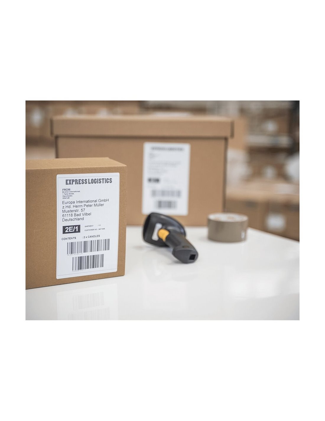 Designul compact și robust face ca imprimanta să fie ușor de amplasat pe birou sau în zona de ambalare, iar compatibilitatea cu software-ul Brother facilitează integrarea rapidă în orice flux de lucru profesional.