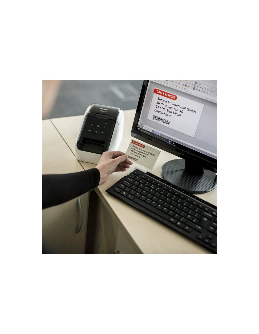Datorită conectivității Wi-Fi și USB, imprimanta poate fi utilizată atât de pe PC sau Mac, cât și de pe smartphone sau tabletă, prin aplicațiile dedicate Brother. Cutterul automat integrat asigură tăiere precisă pentru fiecare etichetă, iar designul compact permite amplasarea ușoară pe birou sau la punctele de vânzare.