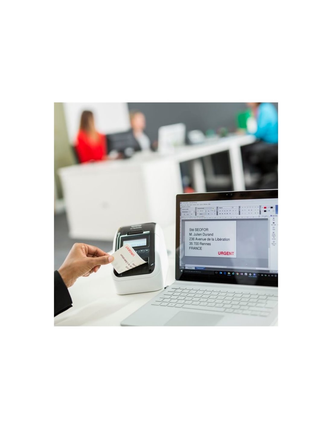 • Imprimantă de etichete Brother QL-820NWBc – model profesional cu imprimare în negru și roșu (fără cerneală).