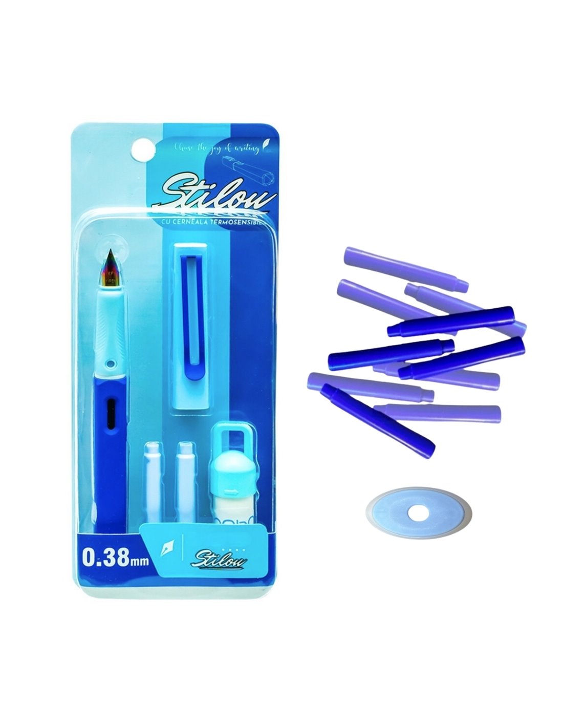 • 10 rezerve de cerneală albastră termosensibilă + radieră integrată