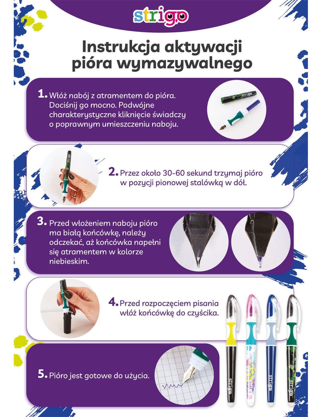 Datorită designului ergonomic, stiloul se potrivește perfect în mâinile copiilor, oferind confort și o poziționare corectă. Penița din iridiu asigură o scriere cursivă și elegantă, rezistentă la presiune, iar cerneala termosensibilă permite corectarea greșelilor prin fricțiune, fără urme, pete sau modificări inestetice. Radiera integrată la capătul stiloului facilitează ștergerea rapidă a erorilor.