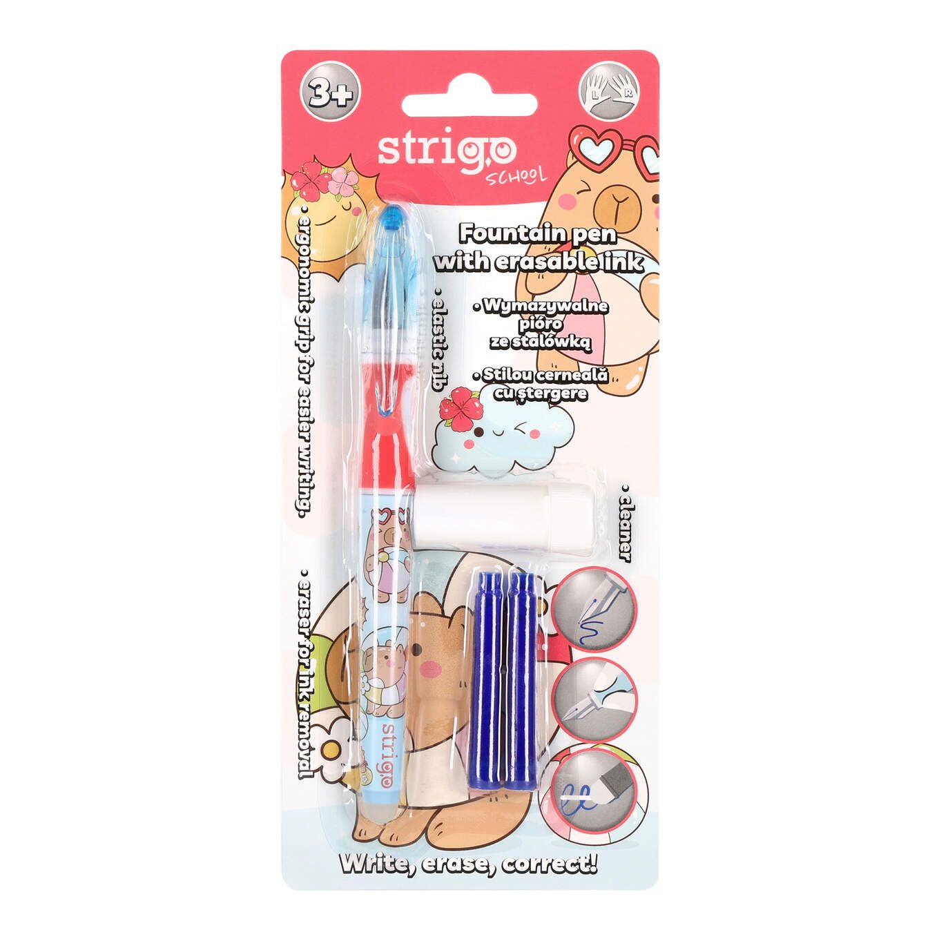 Stiloul Strigo cu cerneală termosensibilă, ștergere prin fricțiune, motiv Capybara roz, este partenerul perfect pentru elevii care învață să scrie și au nevoie de un instrument practic, sigur și distractiv.