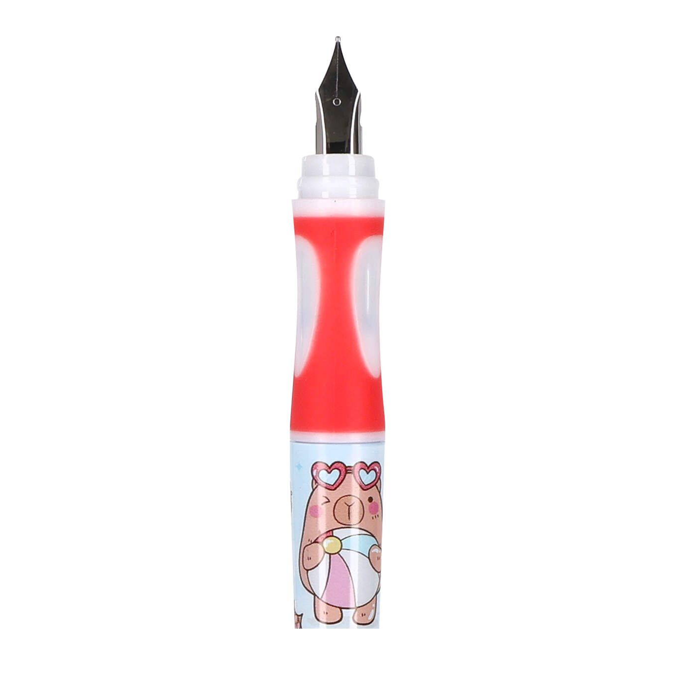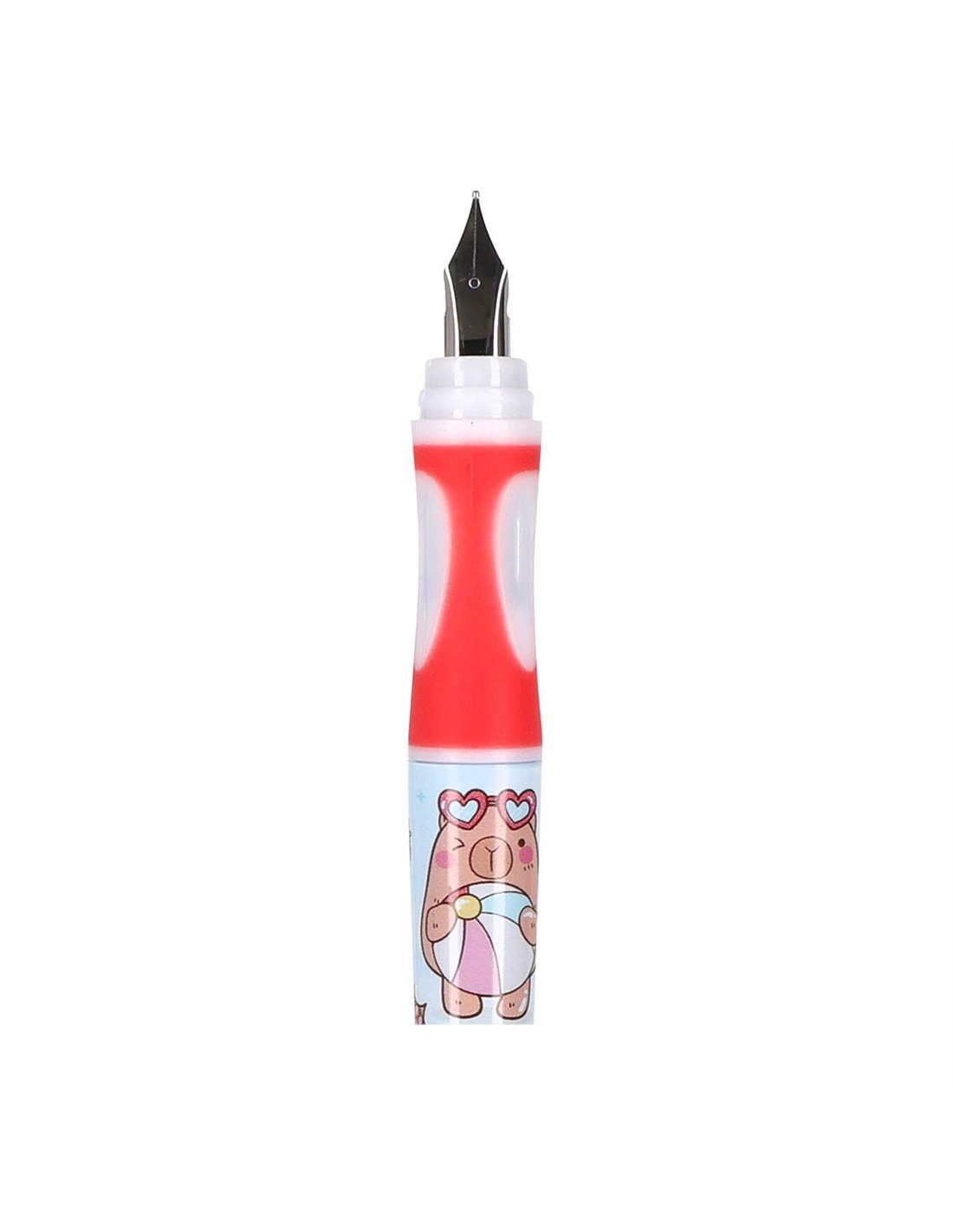 Stiloul Strigo cu cerneală termosensibilă și ștergere prin fricțiune, motiv Capybara roz, îmbină ergonomia, durabilitatea și funcționalitatea, transformând scrisul într-o experiență plăcută și lipsită de griji pentru cei mici.