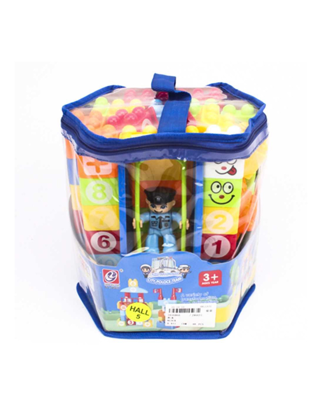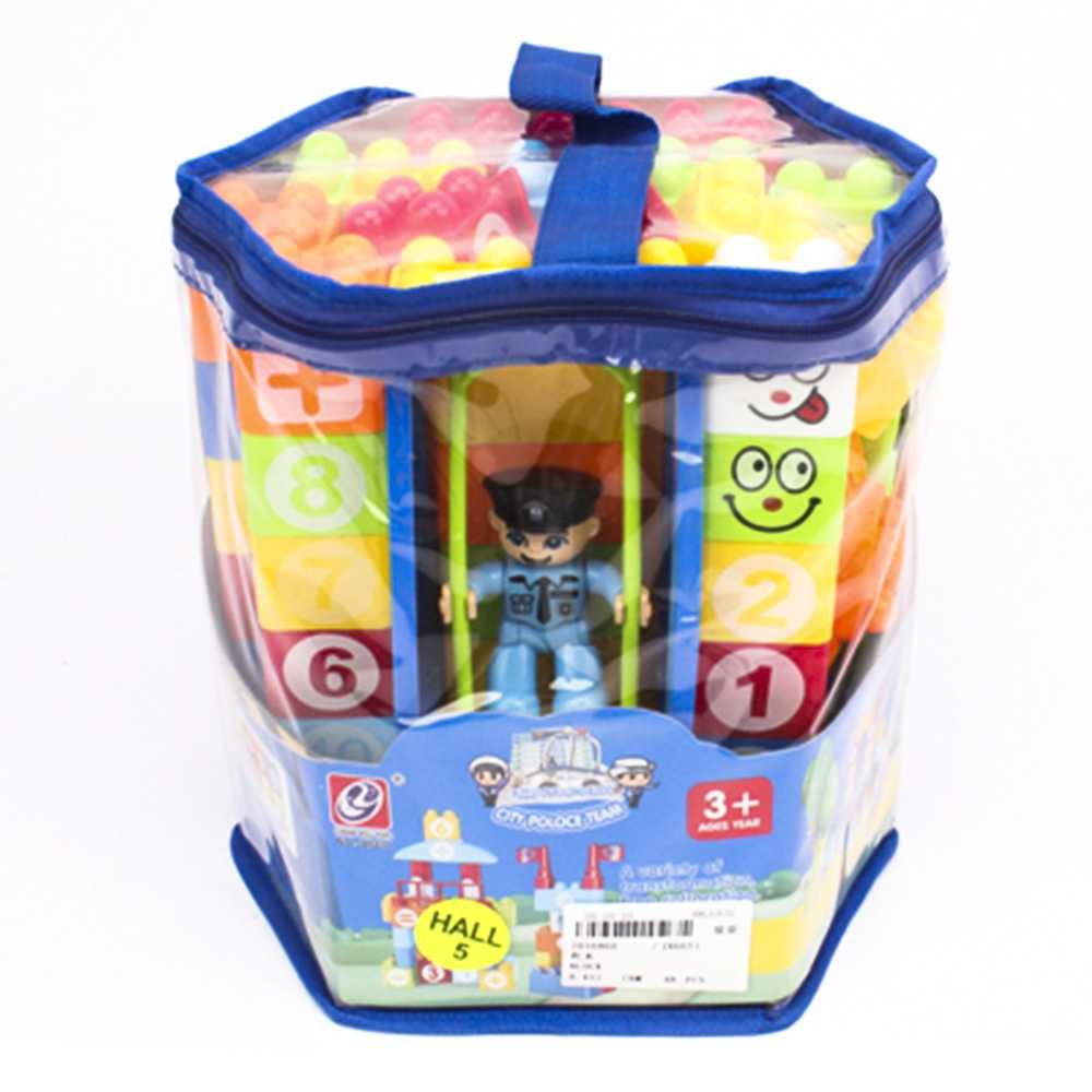 Cuburi constructii + figurina politist, 46 piese
