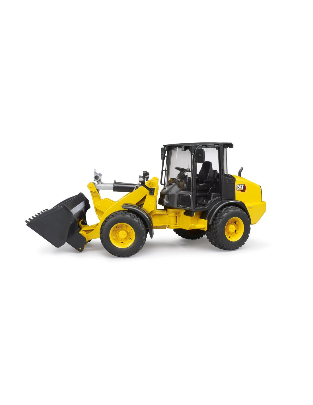 In scara Bruder de 1:16 si cu multe functii specifice Bruder, incarcatorul pe roti are directia articulata familiara, un brat de incarcare complet functional si o cupa de incarcare detasabila.