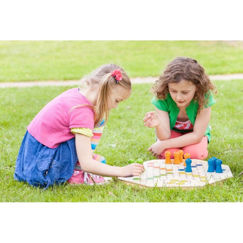 Jocurile de societate nu mai sunt doar pentru acele zile triste de toamnă. Acest joc este minunat și MARE, făcându-l perfect potrivit pentru a fi jucat în grădină. Cine va fi cel mai rapid la readucerea pionilor lui acasă?