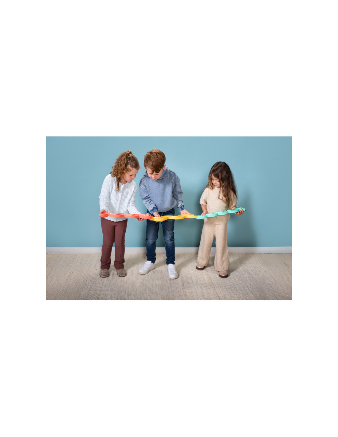 2 mingi (Ø 3,5 cm)Ce dezvolta acest joc:• abilitati motorii grosiere• spirit de echipa si colaborare• echilibru si coordonare