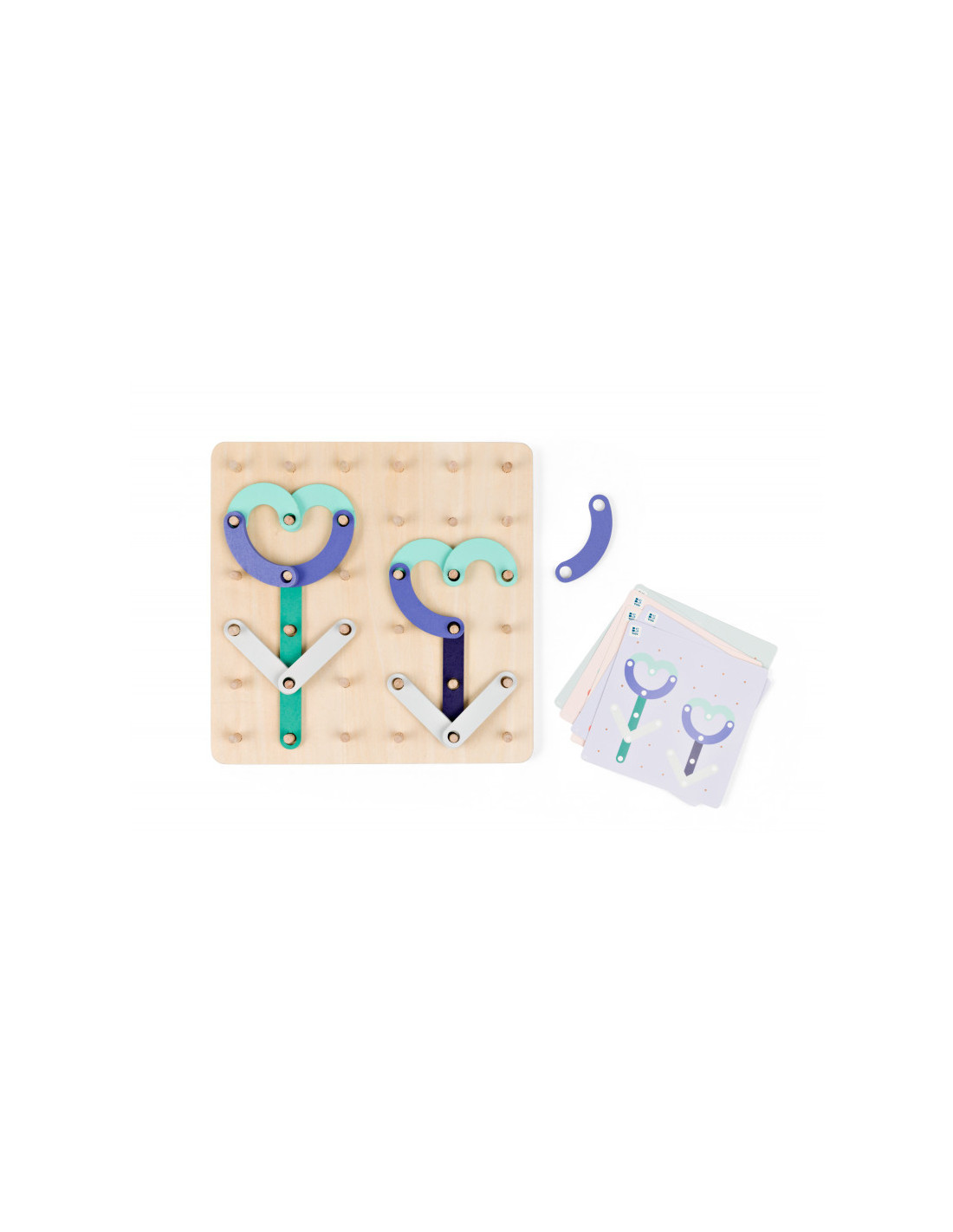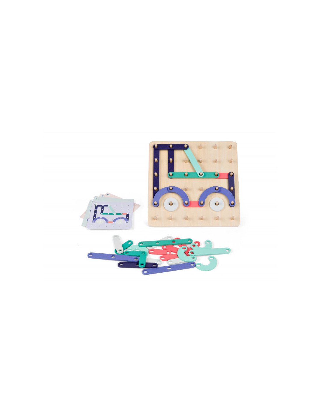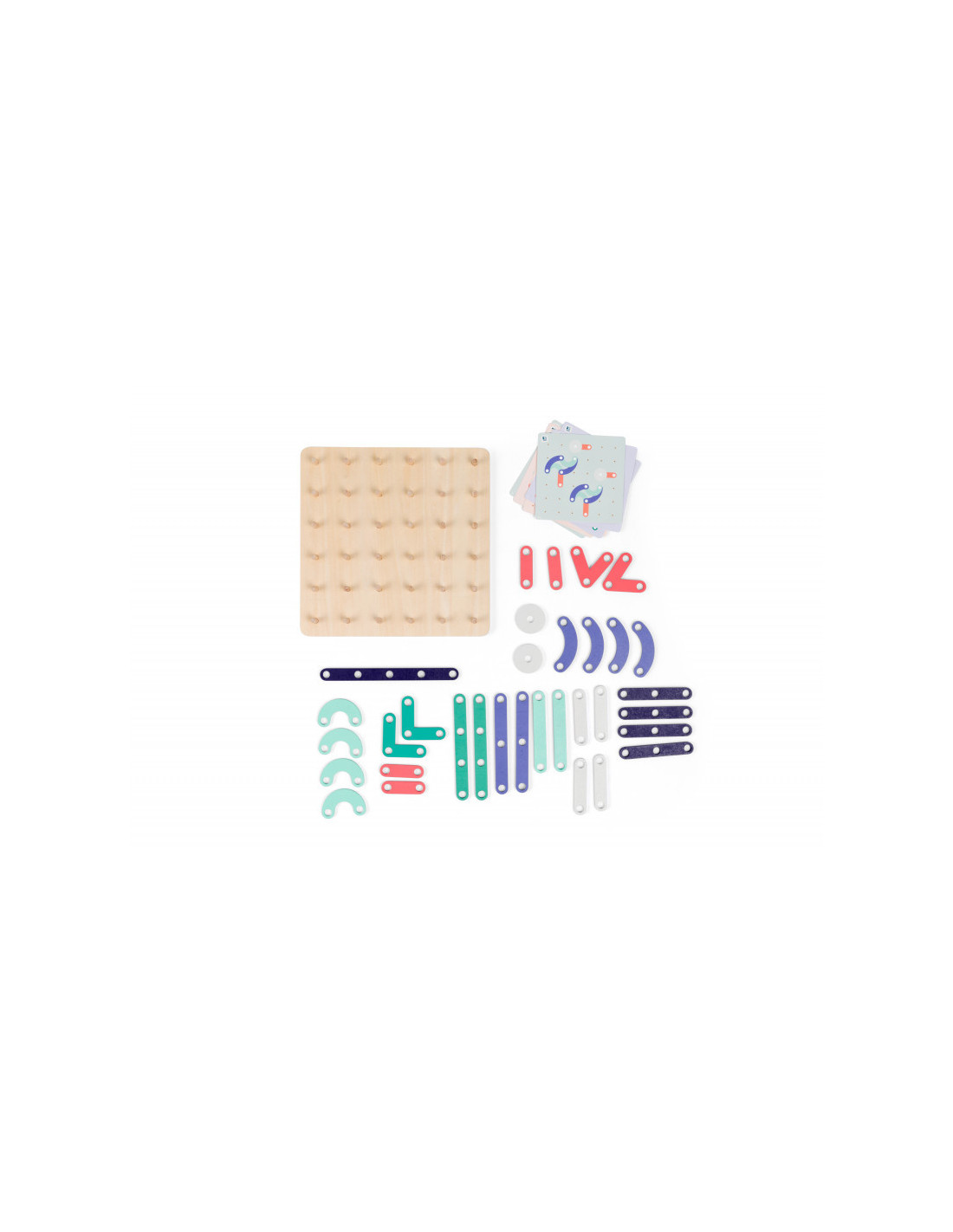 Creeaza modele colorate, forme interesante sau lasa-ti imaginatia libera pentru a realiza propriile capodopere!Un joc educativ din lemn care ii ajuta pe copii sa-si dezvolte gandirea logica, memoria si creativitatea prin joaca.Continutul setului:1 baza din lemn (21×21 cm)6 carduri cu 12 modele (10×10 cm)33 de piese din lemn colorateCe dezvolta acest joc:• antrenarea memoriei de lucru• stimularea creativitatii• recunoasterea vizuala si atentia la detalii