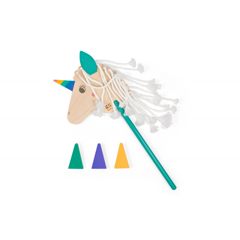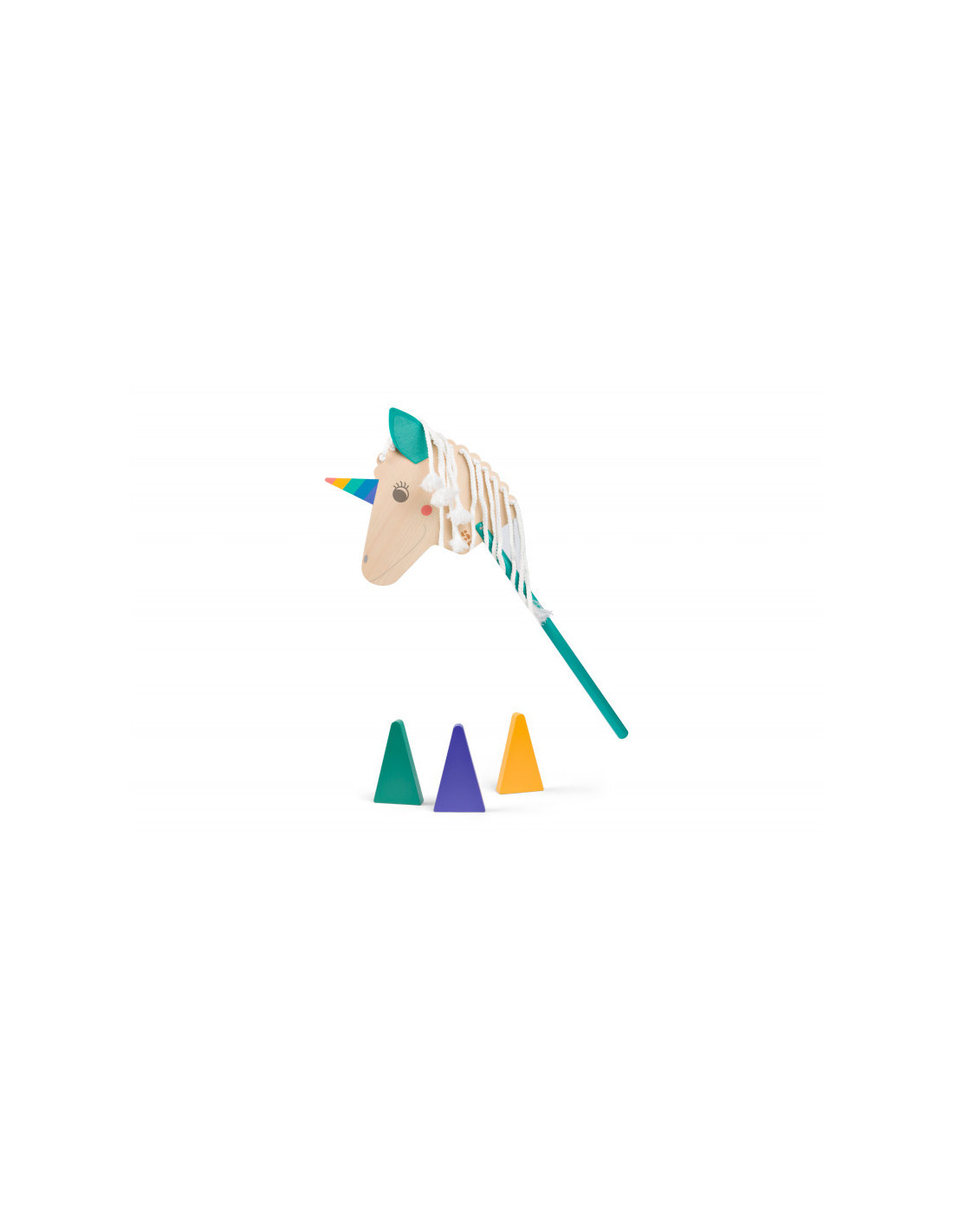 Porneste intr-o aventura magica alaturi de Unicornul de Calarie!Copiii pot merge calare prin cele 3 conuri colorate, exersandu-si echilibrul, rezistenta si imaginatia. O jucarie fermecata care incurajeaza miscarea si joaca activa in aer liber!Continutul setului:unicorn din lemn (65×27×2 cm)3 conuri colorate (10×6×1,5 cm)Ce dezvolta acest joc:• abilitati motorii grosiere• rezistenta fizica si echilibru• placerea jocului in aer liber