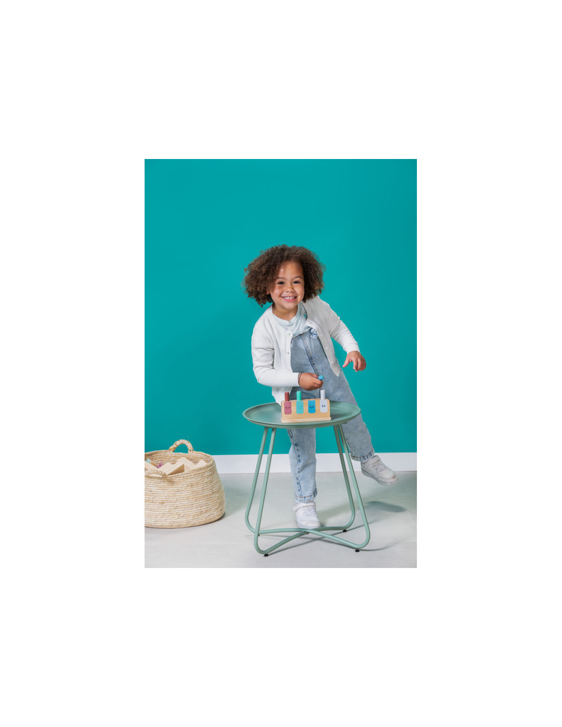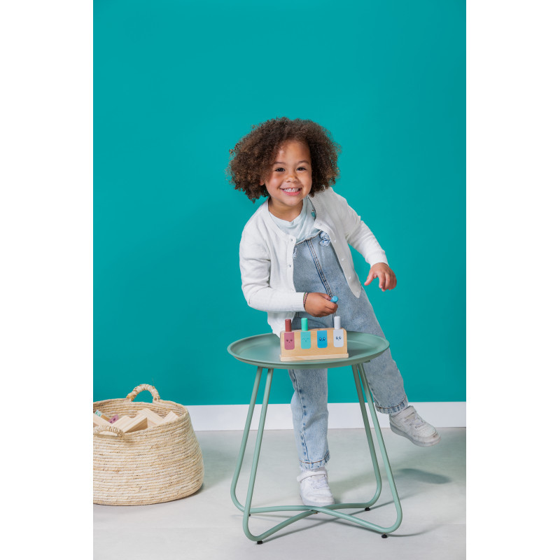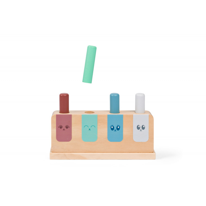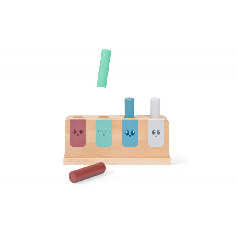 O jucarie plina de surprize si voie buna! Apasa piesele in jos si priveste cum sar in sus, spre amuzamentul celor mici. Perfecta pentru joaca zilnica, stimuland curiozitatea si coordonarea mana–ochi.Continutul setului:1 baza din lemn4 betisoare colorateCe dezvolta acest joc:• motricitate fina si indemanare• curiozitate si explorare senzoriala• recunoasterea culorilor si atentia