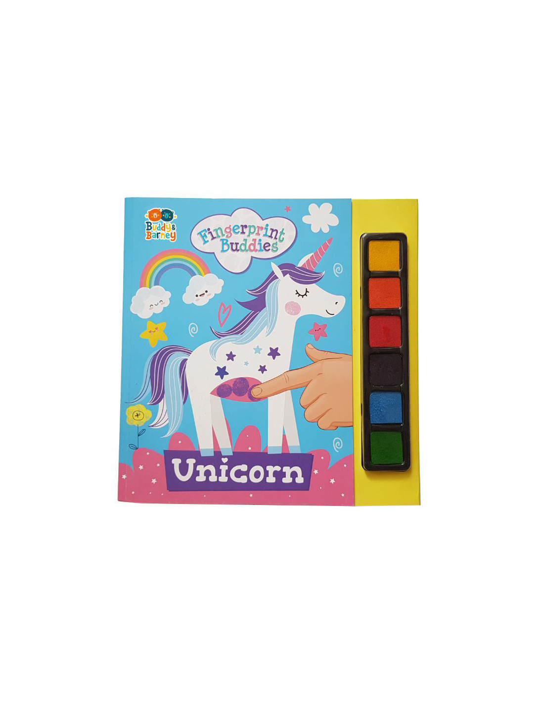 Aceasta fascinanta carte de colorat cu degetele FINGERPRINT BUDDIES UNICORN de la Buddy&Barney UK, este o noua sursa de inspiratie pentru copii de a invata prin joaca sa picteze si sa isi dezvolte astfel simtul artistic si creativ.