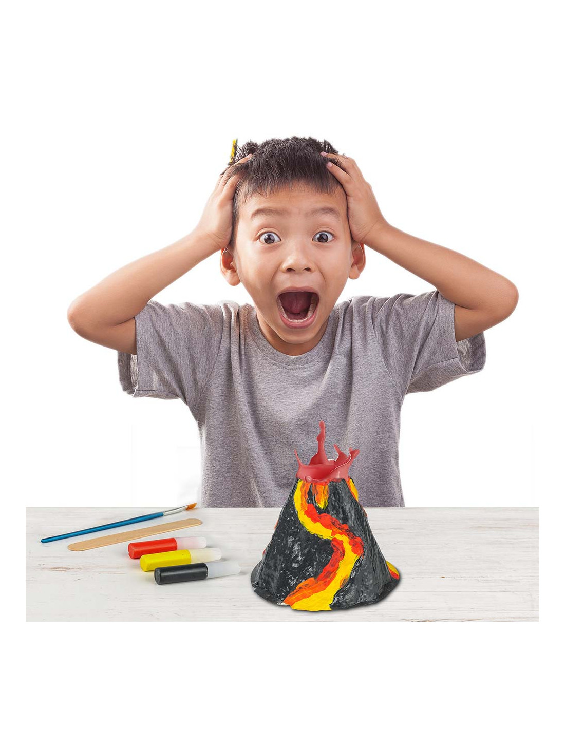 Copiii au ocazia de a-si modela propriul vulcan (ipsos si forme incluse), de a-l picta (vopsea si pensula furnizate) si apoi de a-l face sa erupa (include praf de eruptie)!