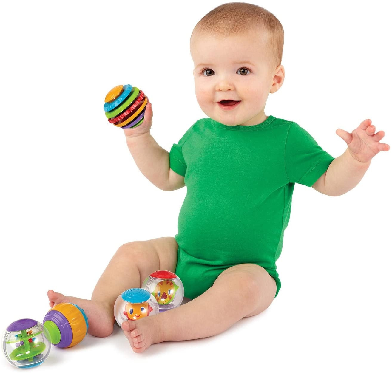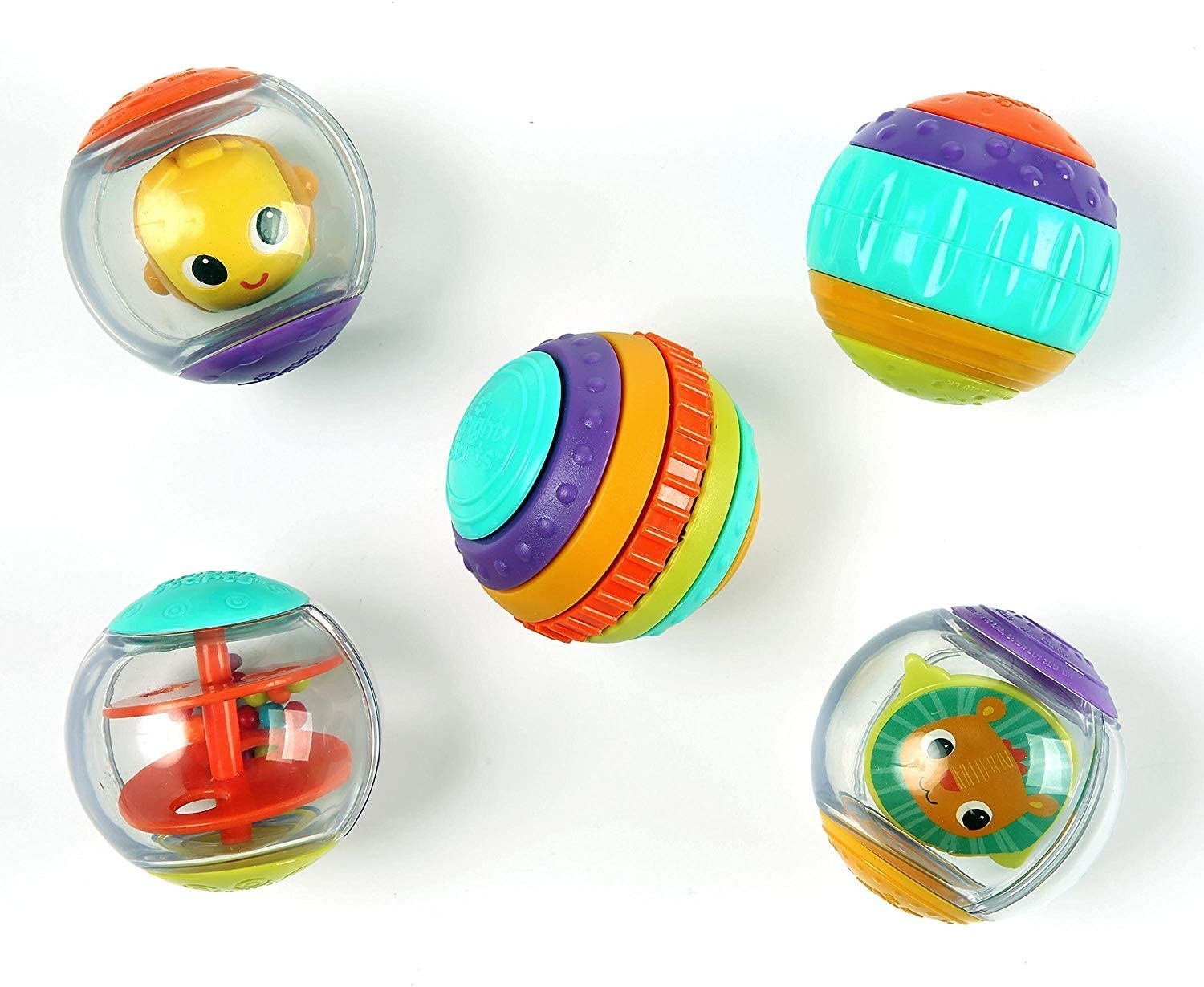 Cele 5 mingi de activitati stimuleaza bebelusul sa le exploreze pentru a descoperi lucruri noi. Jucaria face parte din colectia Having a Ball – colectie care utilizeaza “mingea” ca si modalitate de joaca educativa pentru bebelusi si copii.