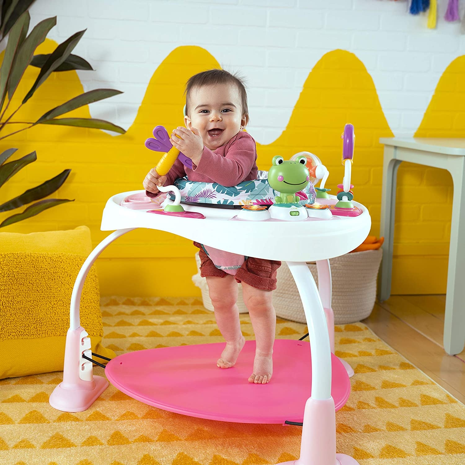 Pe masura ce micutul creste, puteti scoate suportul pentru picioare din modul jumper, transformand centrul intr-o masuta de joaca pentru copilasi mai mari.