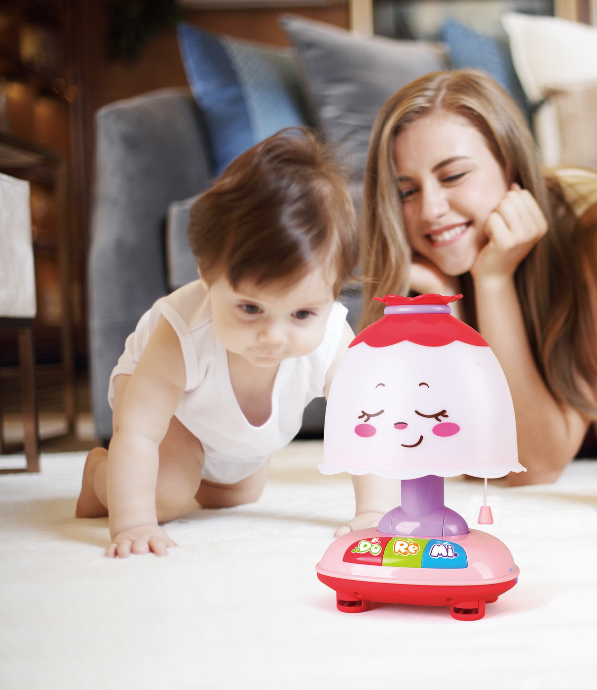 Luminile colorate insotite de muzica linistitoare si efecte sonore stimuleaza simturile vizuale si audace schimbarea culorilor il ajuta pe bebelus sa inteleaga cauza si efectul si sa dezvolte abilitati de gandire logica.