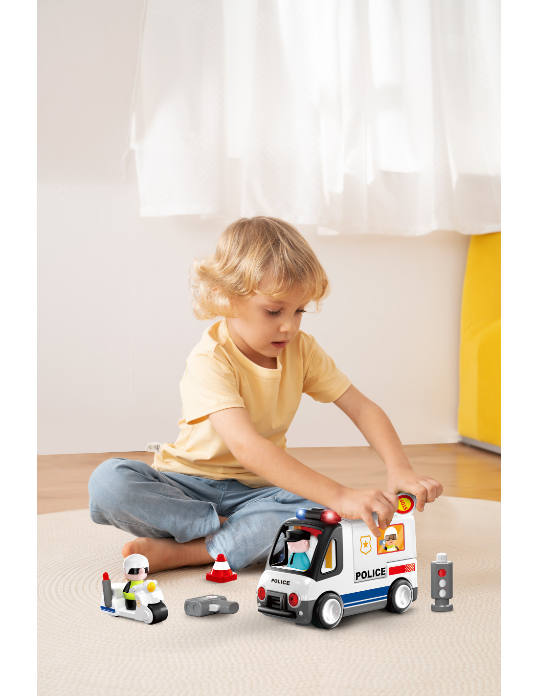 Masinuta de jucarie de politie pentru invatare timpurie este un set educativ destinat copiilor cu varste intre 1.5 si 5 ani.