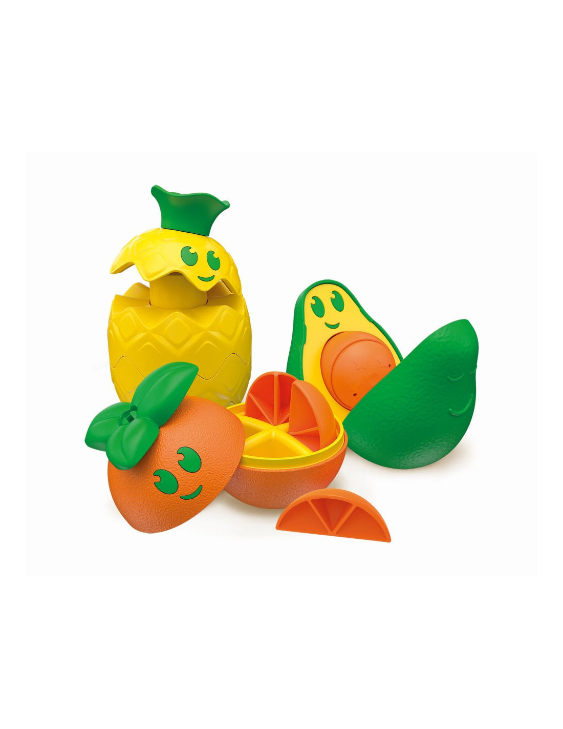 Ananasul este compus din elemente stivuite, iar portocala se deschide si ascunde 4 felii ce trebuiesc indepartate si reintroduse in interior.