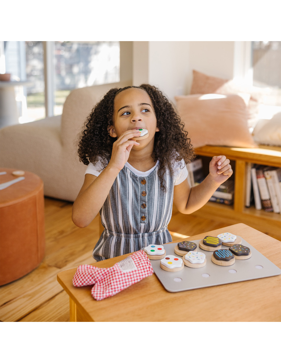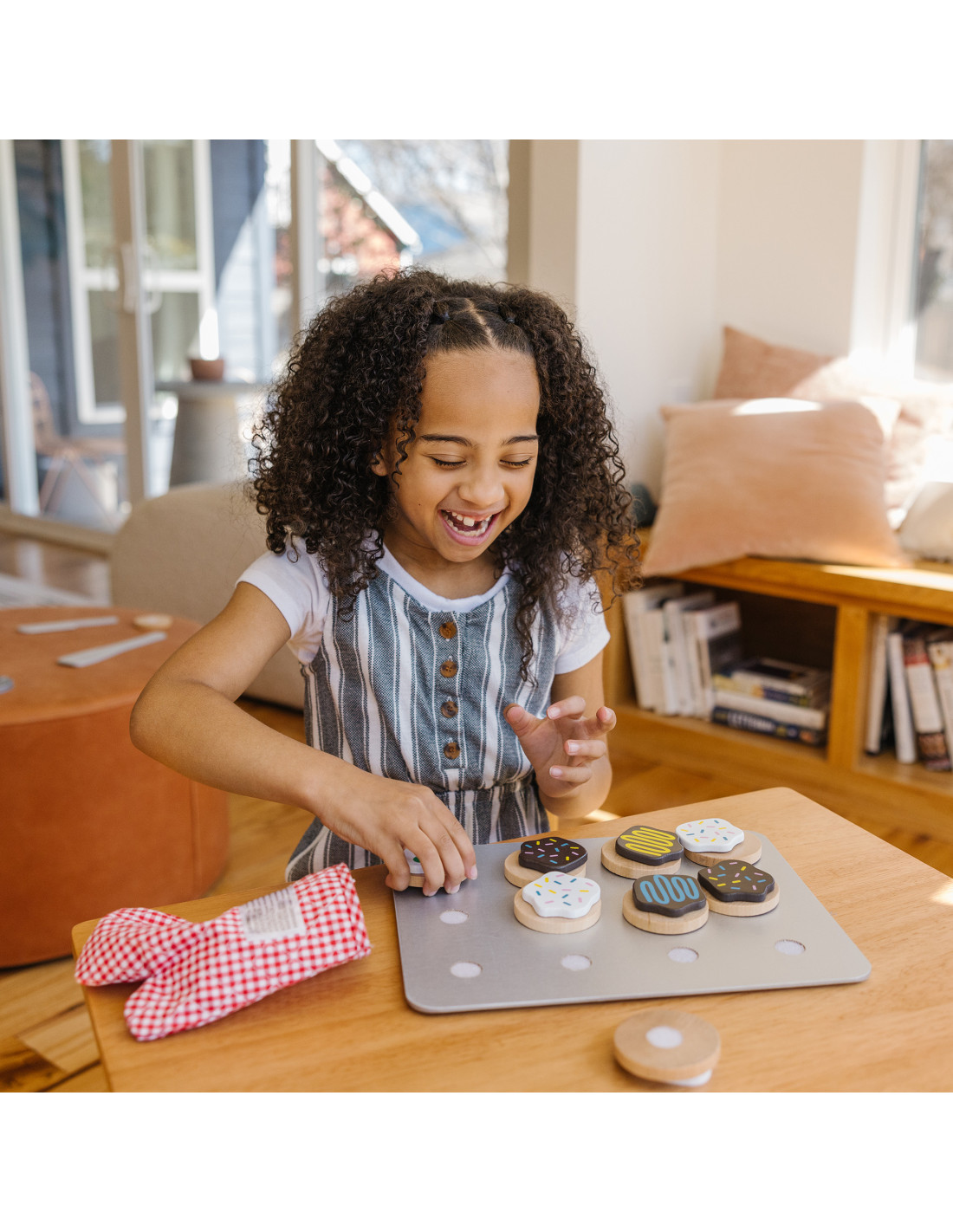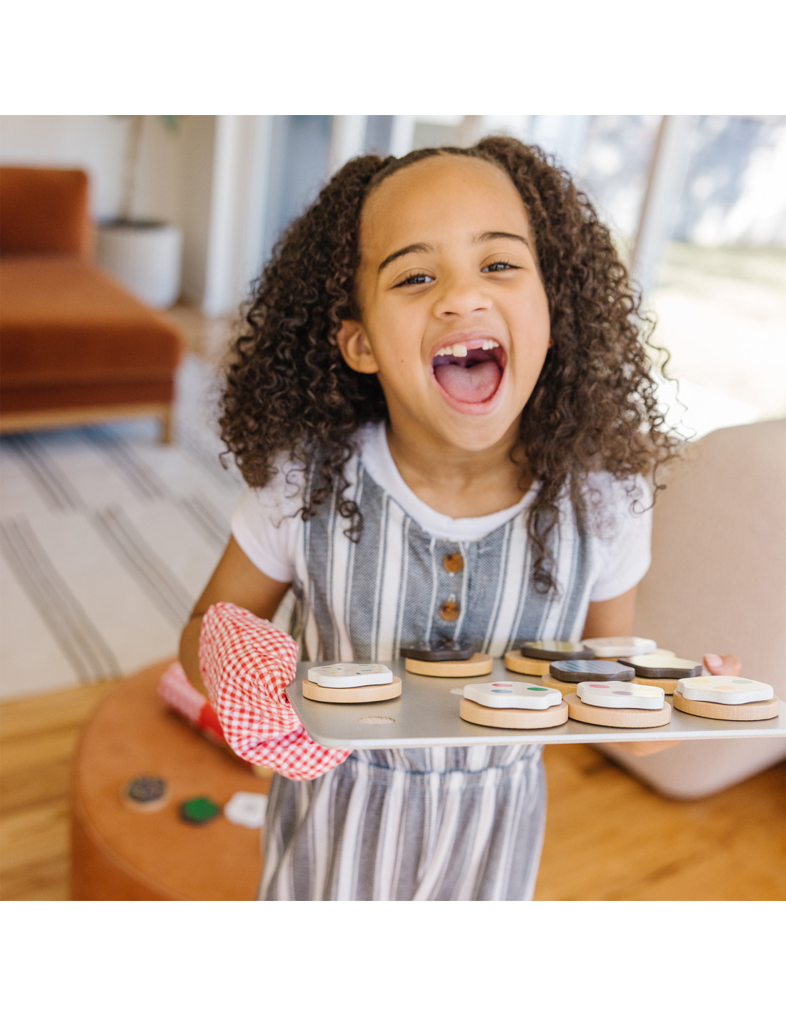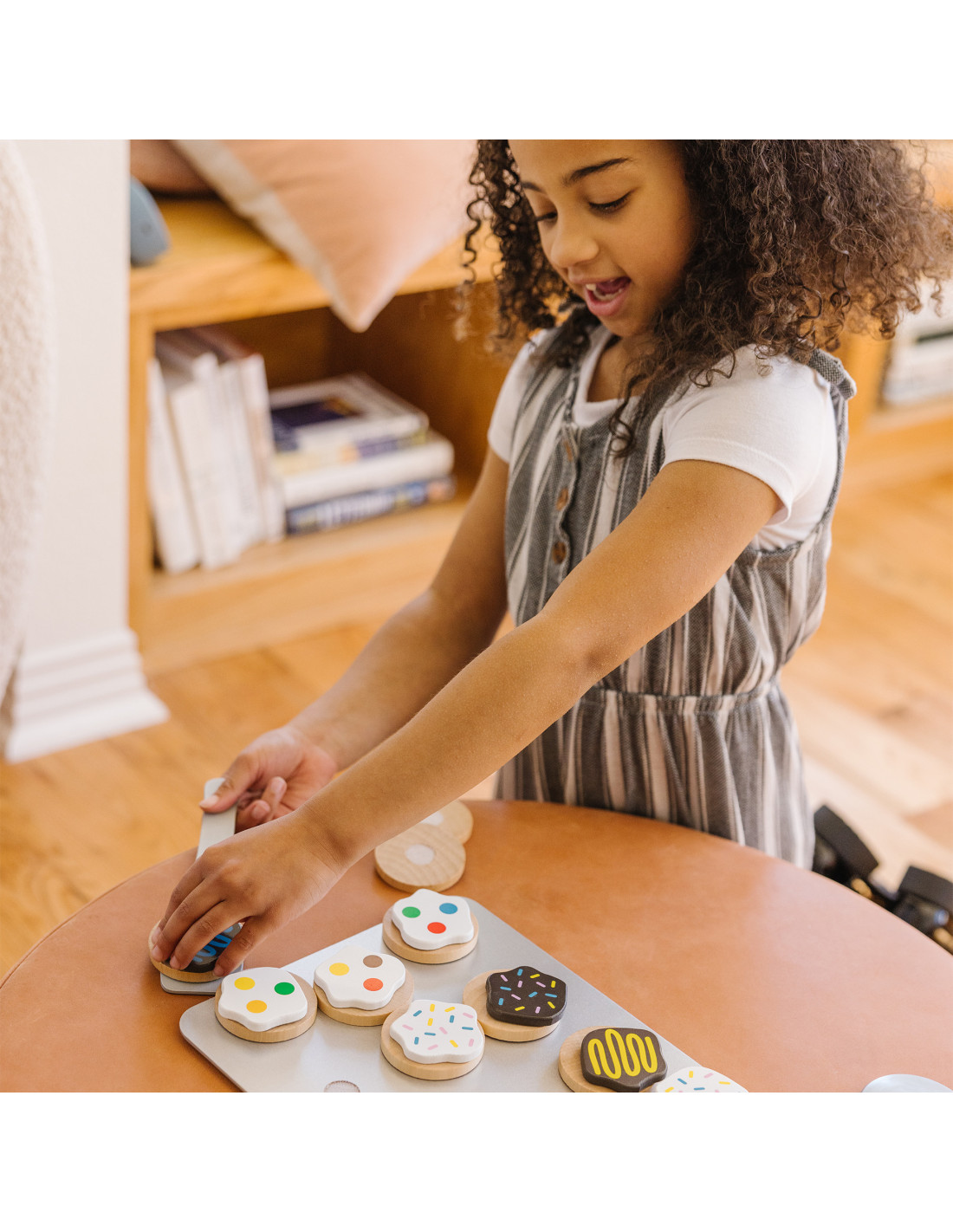 Setul de fursecuri din lemn Melissa and Doug, feliat si copt, este o introducere dulce in joaca imaginativa in bucatarie!