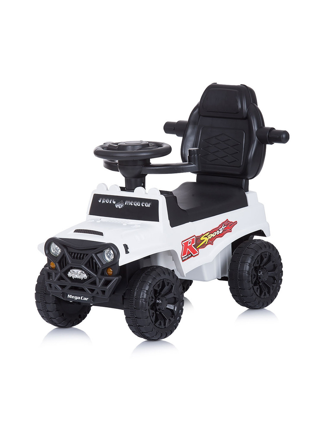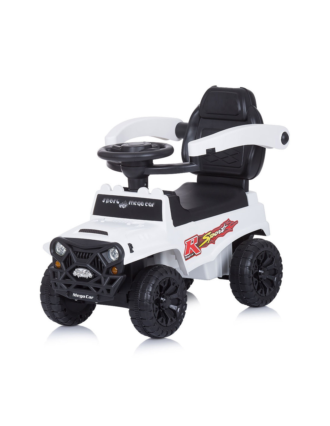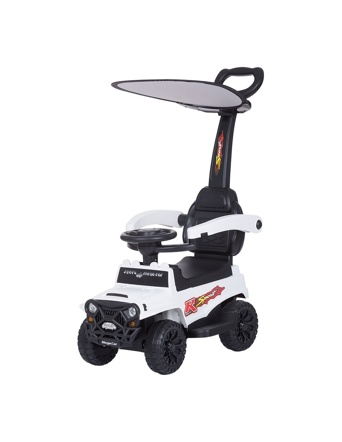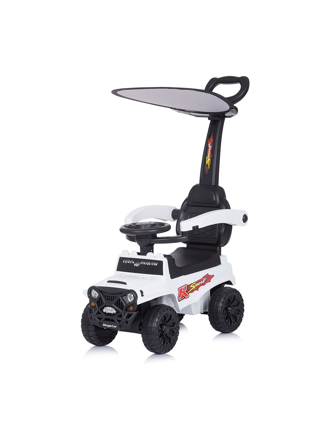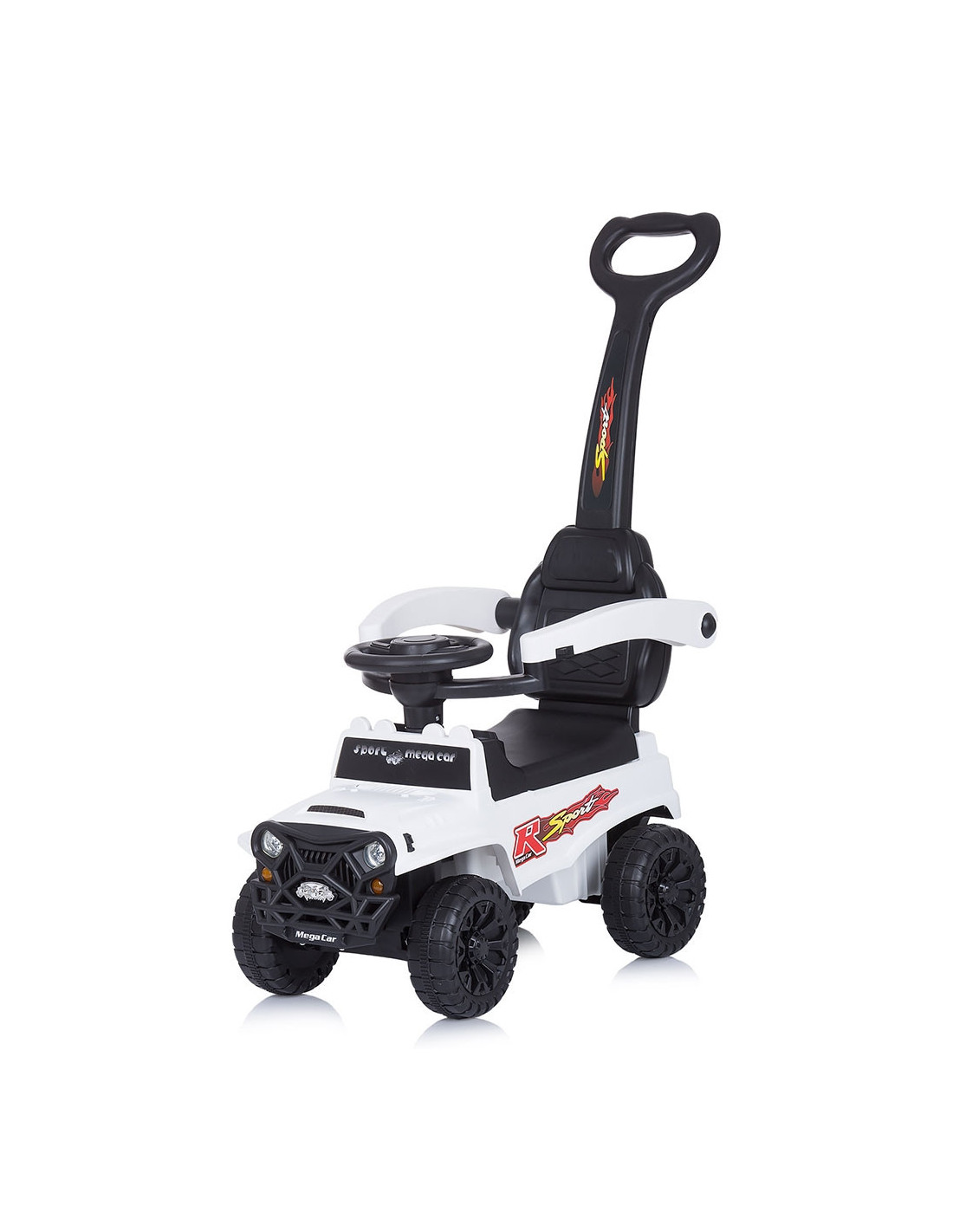 - Masinuta se poate pune in miscare de catre copil cu ajutorul picioarelor sau de catre parinte cu ajutorul manerului