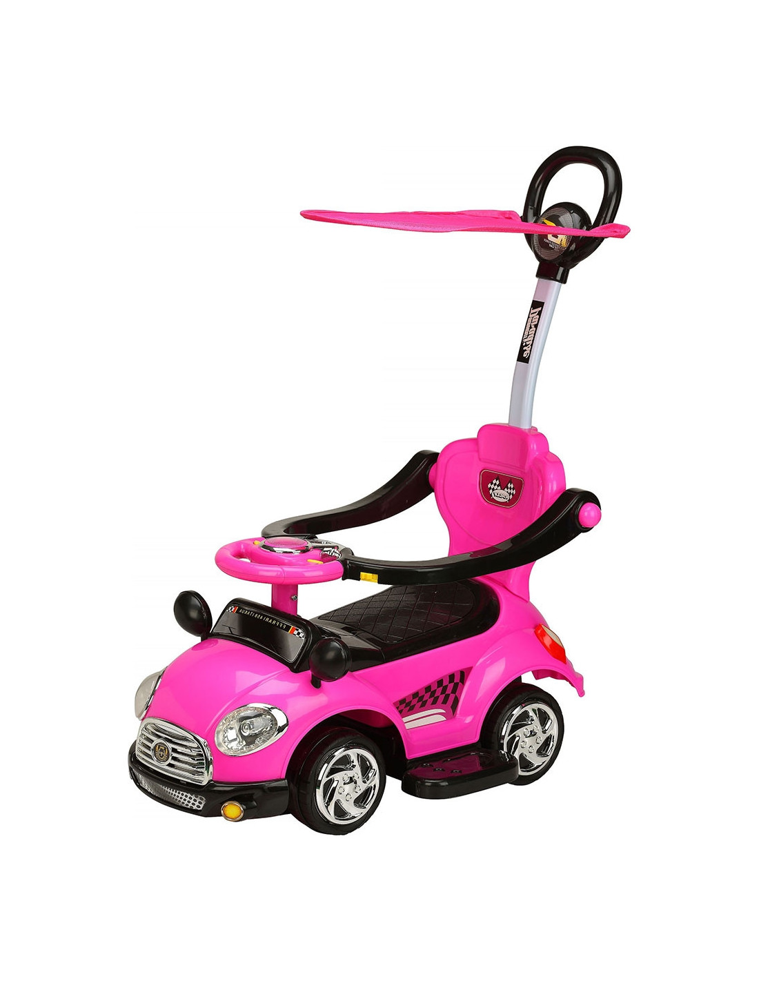 - Masinuta se poate pune in miscare de catre copil cu ajutorul picioarelor sau de catre parinte cu ajutorul manerului