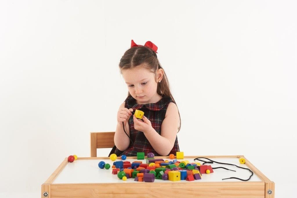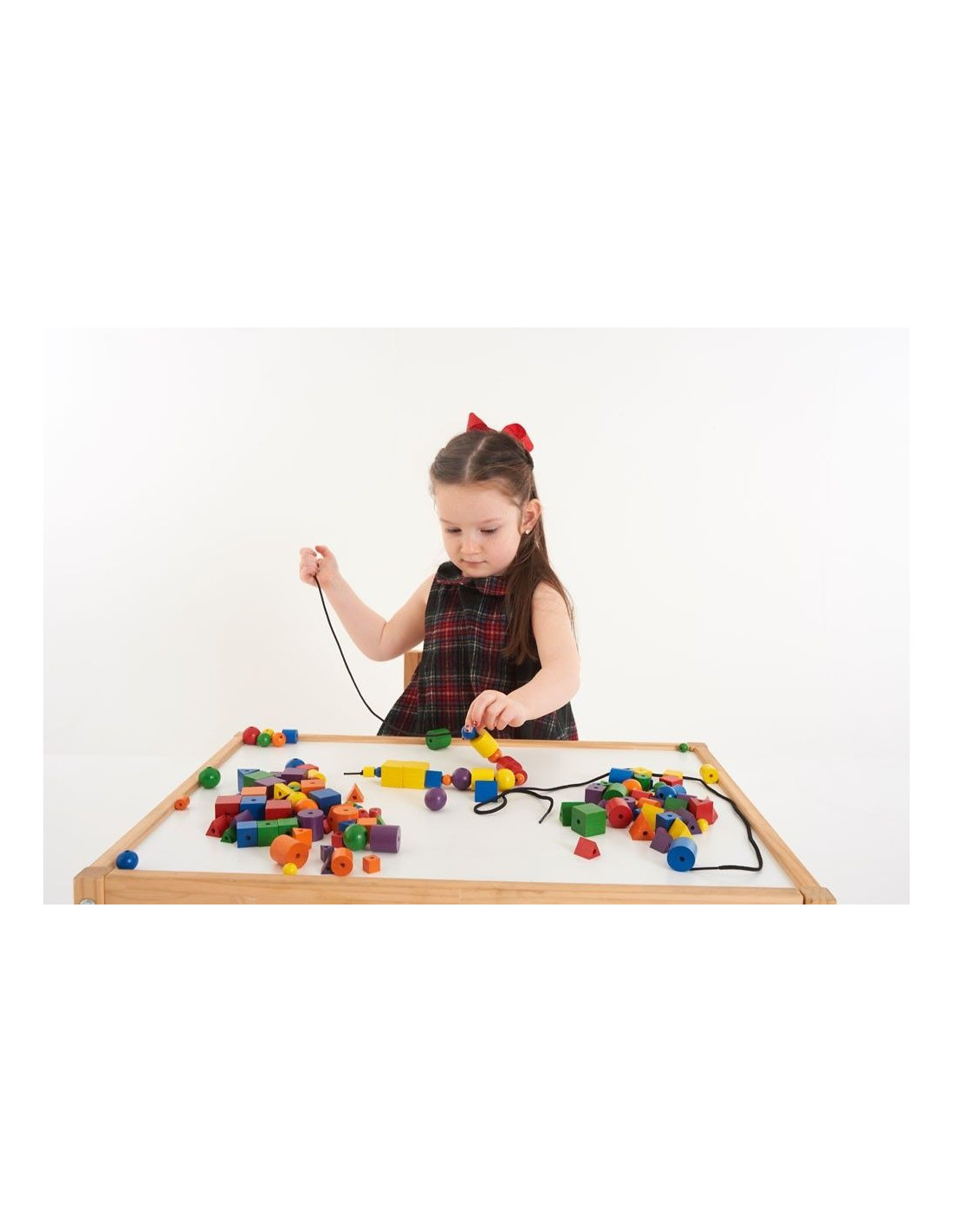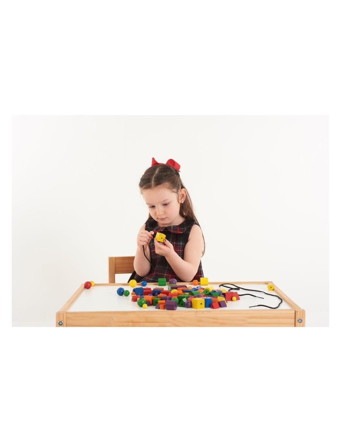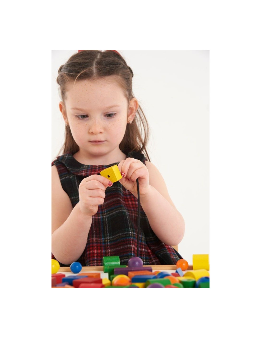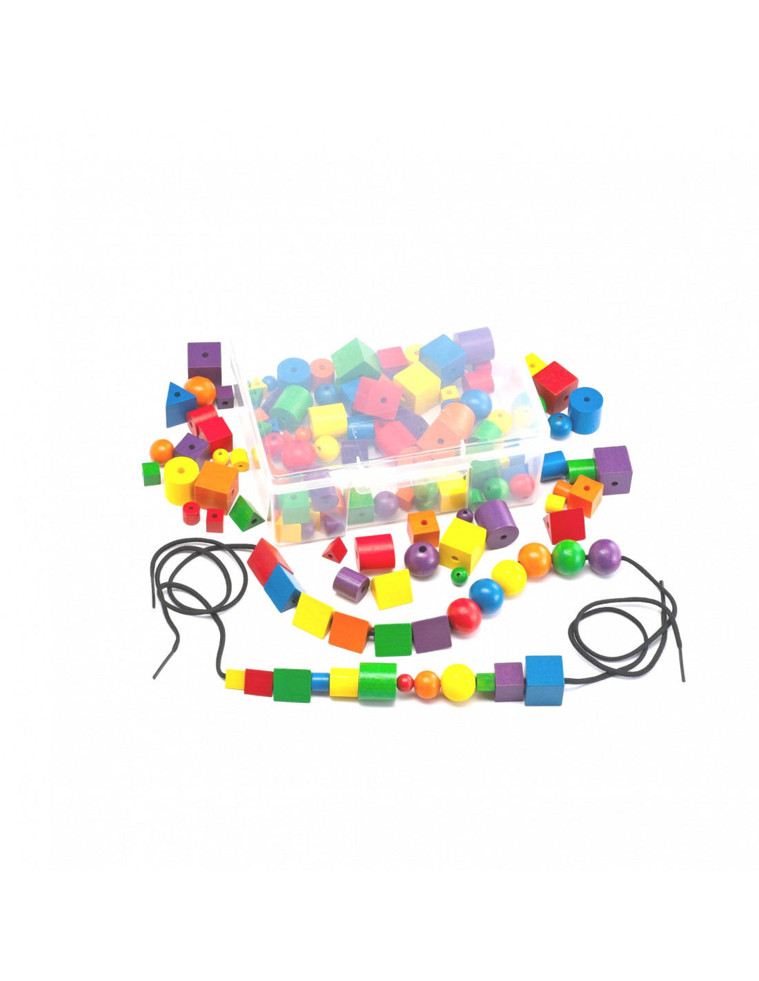 Margele de sortat din lemn MIJLOCII , Set educativ de 144 piese Joaca educativa si practica Acest set contine 144 de margele din lemn de dimensiune medie (24 mm diametru sau latura), realizate in 3 marimi, 4 forme si 6 culori atractive. Activitatile de sortare, insirare si clasificare sprijina dezvoltarea motricitatii fine si a gandirii logice. Invatare prin manipulare Copiii pot folosi margelele pentru a exersa recunoasterea culorilor si formelor, numararea si crearea de modele. In acelasi timp, jocul de insirare ajuta la coordonarea mana-ochi si la pregatirea pentru activitatile de scriere. Continutul setului 144 margele din lemn colorate (3 marimi, 4 forme, 6 culori) 2 sireturi de 550 mm pentru activitati de insirare Cutie din plastic pentru depozitare Beneficii educative Matematica: sortare, numarare si modele Dezvoltare fizica: abilitati motrice fine si coordonare Intelegerea mediului: recunoasterea culorilor si formelor Creativitate: design si joc imaginativ Detalii produs Dimensiune margele: 24 mm Numar total piese: 144 margele + 2 sireturi Ambalaj: cutie din plastic rezistent Varsta recomandata: 3+ ani
