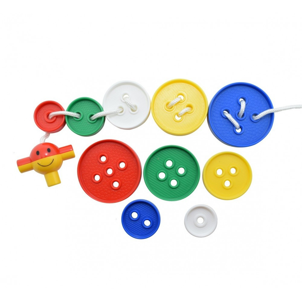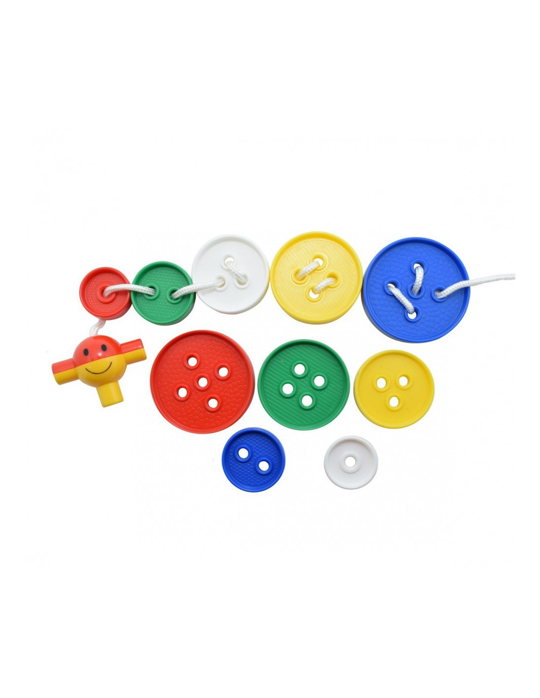 Set Nasturi de Insirat Plastic Gigant Commotion - Set de 44 Bucati Multicolor Acest set colorat de nasturi gigantici este perfect pentru dezvoltarea abilitatilor matematice si a motricitatii fine. Setul include 44 de nasturi de diferite dimensiuni si culori, impreuna cu 6 snururi colorate si 4 snururi albe cu capat hazliu, pentru a stimula creativitatea si invatarea activa a copiilor. Beneficii si Caracteristici: Dezvoltare motricitate fina : Copiii pot insira nasturii pe snururi, ceea ce ii ajuta sa-si imbunatateasca abilitatile motorii fine. Intelegerea culorilor : Setul contine nasturi in 5 culori diferite, ceea ce ajuta la recunoasterea si invatarea culorilor. Matematica : Prin insirarea nasturilor, copiii pot invata despre serialitate, secventialitate si pot crea diferite modele geometrice. Dimensiuni variate : Nasturii sunt disponibili in 5 dimensiuni diferite (35-75 mm), iar lungimea snururilor variaza de la 550 mm la 770 mm, oferind oportunitati de joaca si invatare. Recomandat copiilor de peste 3 ani : Setul este ideal pentru copii mici, contribuind la dezvoltarea abilitatilor cognitive si fizice intr-un mod jucaus si educativ. Sprijina urmatoarele domenii de invatare : Dezvoltare fizica , motricitate fina Cunoasterea mediului inconjurator , culori Matematica , serialitate si secventialitate Specificatii : Marimea nasturilor: 35-75 mm Lungime snur colorat: 770 mm Lungime snur alb cu capat hazliu: 550 mm Varsta recomandata: Peste 3 ani Producator : Commotion