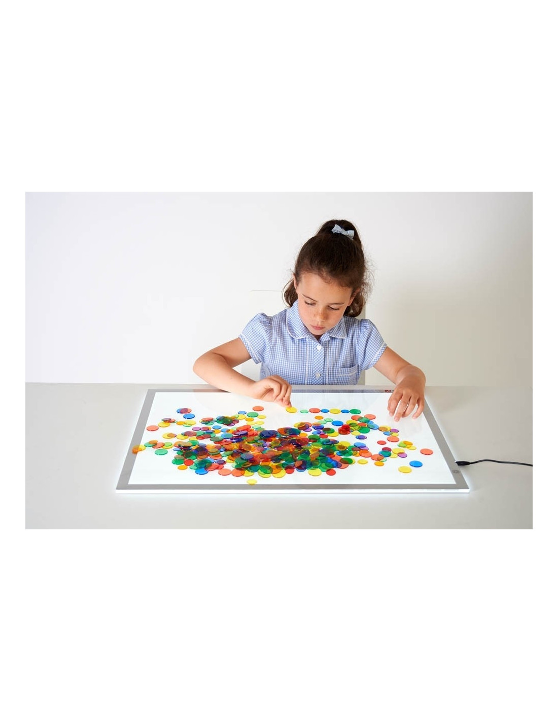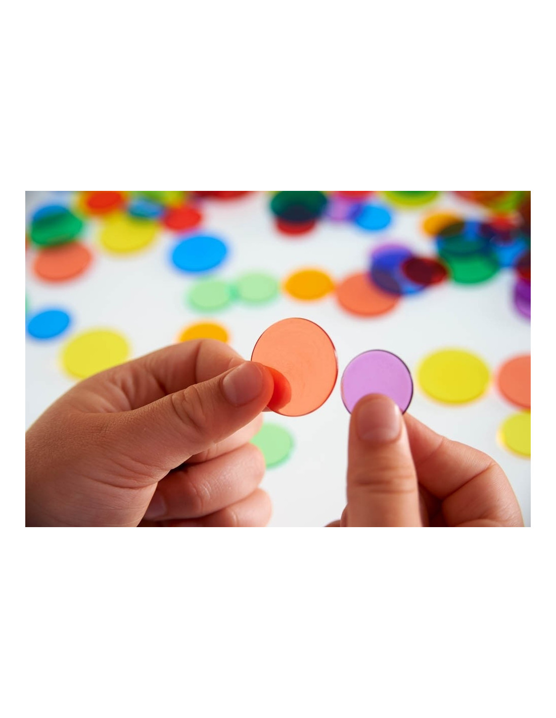 Joc sortare buline transparente Edx Education , Set de 500 bucati multicolore Invatare prin joc vizual si tactil Acest set contine 500 de buline transparente in 6 culori vii si 2 dimensiuni, fiind ideal pentru activitati pe panouri iluminate. Copiii pot exersa numararea, sortarea, crearea de sabloane si recunoasterea culorilor intr-un mod distractiv si interactiv. Activitati educative variate Bulinele sunt excelente pentru jocuri matematice timpurii, dezvoltarea gandirii logice si a creativitatii. Prin manipularea pieselor, cei mici isi imbunatatesc motricitatea fina si coordonarea vizuala. Beneficii educative Dezvoltare fizica: abilitati motrice fine Intelegerea mediului: recunoasterea si asocierea culorilor Matematica: numarare, sortare si modele vizuale Continutul setului 200 buline transparente O 25 mm 300 buline transparente O 19 mm Cutie practica pentru depozitare Detalii produs Numar piese: 500 buline transparente Culori: 6 nuante vii Dimensiuni: 19 mm si 25 mm diametru Varsta recomandata: 3+ ani Producator: Edx Education