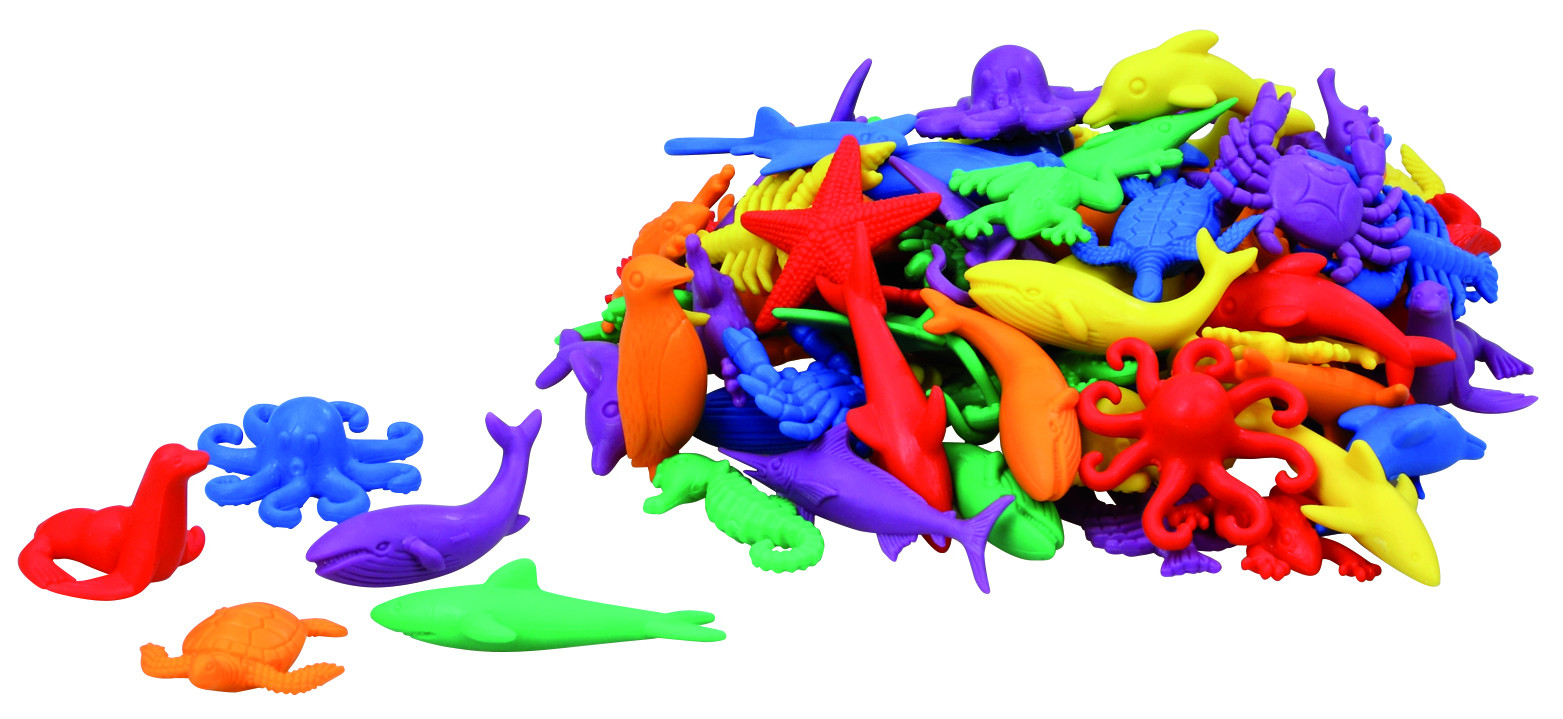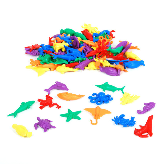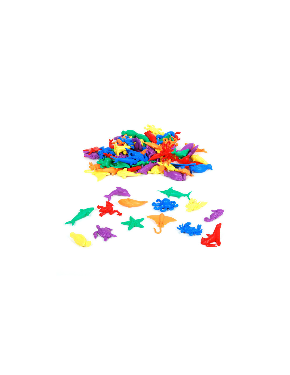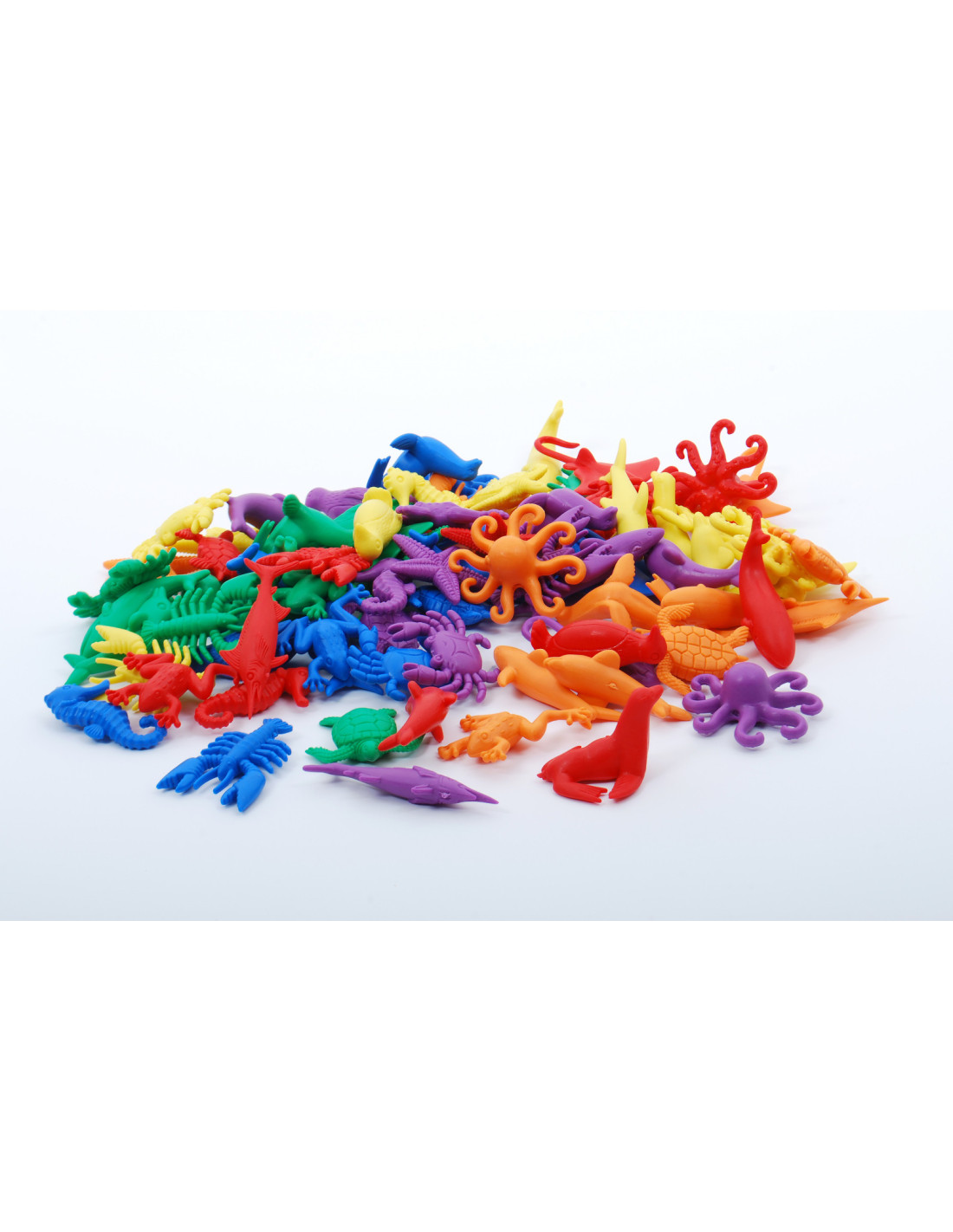 Joc de sortare ANIMALE MARINE , 84 piese colorate pentru invatare prin joaca Descopera lumea marina prin joc Acest set contine 84 de figurine reprezentand 14 specii de animale acvatice (crab, delfin, broasca, homar, caracatita, pinguin, foca, cal de mare, rechin, stea de mare, batoidea, peste-spada, broasca testoasa si balena), fiecare disponibila in 6 culori vii: rosu, albastru, verde, galben, violet si portocaliu. Invatare prin sortare si numarare Jocul este ideal pentru activitati de numarare, sortare, clasificare si crearea de modele. Figurinele pot fi folosite si pentru exercitii matematice simple, precum adunarea, scaderea, impartirea sau multiplicarea. Dezvoltare cognitiva si creativa Activitatile de sortare sprijina dezvoltarea abilitatilor cognitive, a spiritului de observatie si a capacitatii de categorizare. In acelasi timp, jocul stimuleaza imaginatia copiilor si recunoasterea formelor si culorilor. Beneficii educative Setul sprijina mai multe arii de dezvoltare: Matematica: numarare, sortare si modele Dezvoltare fizica: abilitati motrice fine prin manipulare Intelegerea lumii: cunoasterea mediului marin si a culorilor Arte si design: joc imaginativ si creativitate Detalii produs Numar piese: 84 figurine din plastic Dimensiune figurine: aprox. 50 mm Varsta recomandata: 3+ ani