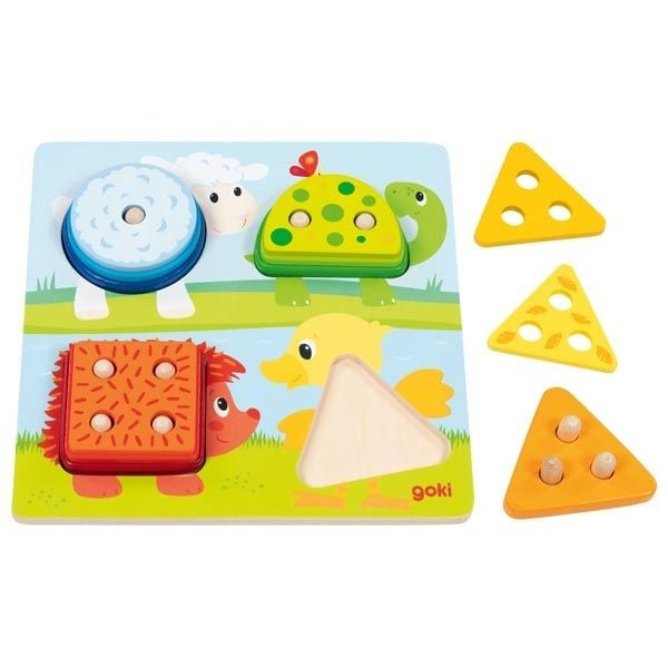 Culori, forme geometrice, dimensiuni si animale - poti invata multe cu acesta jucarie din lemn.