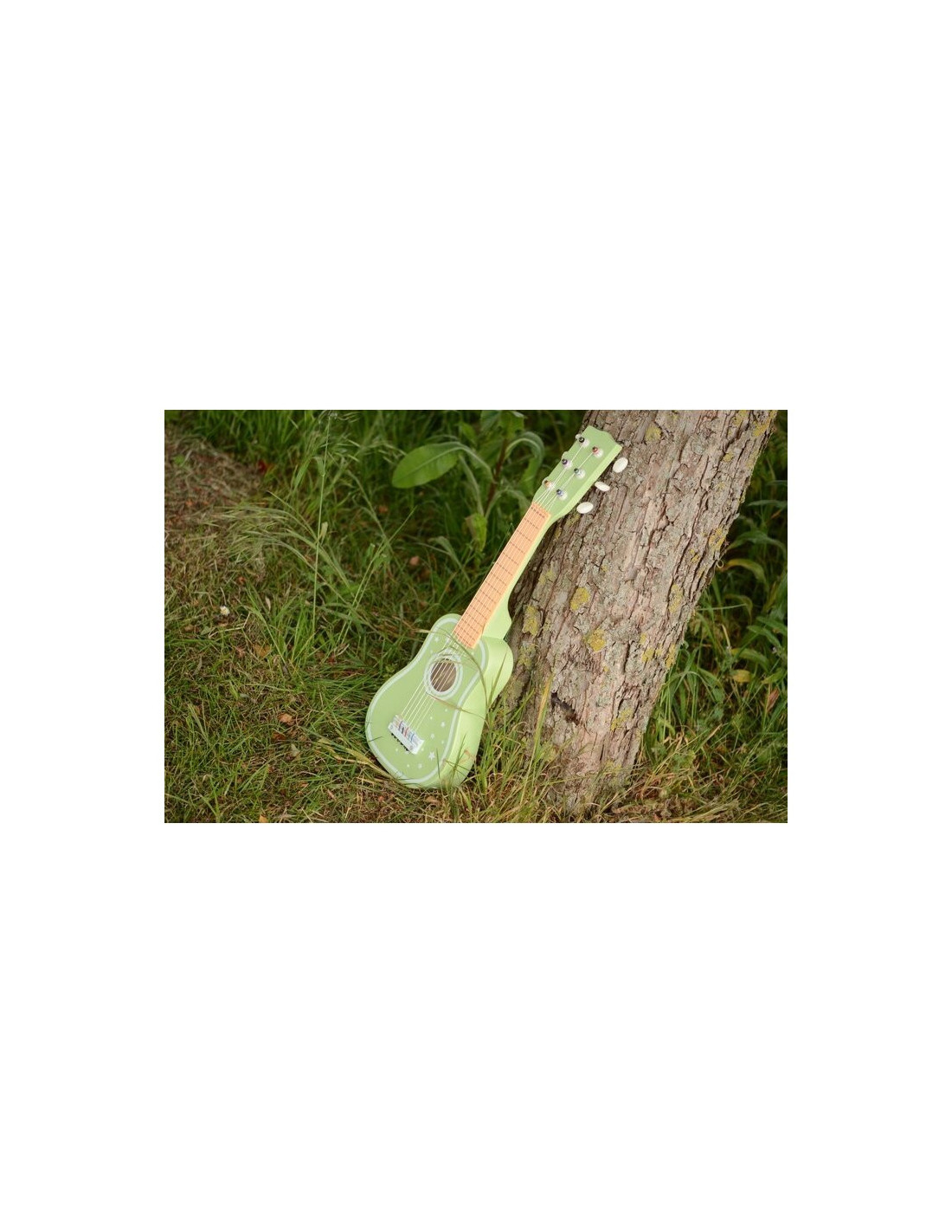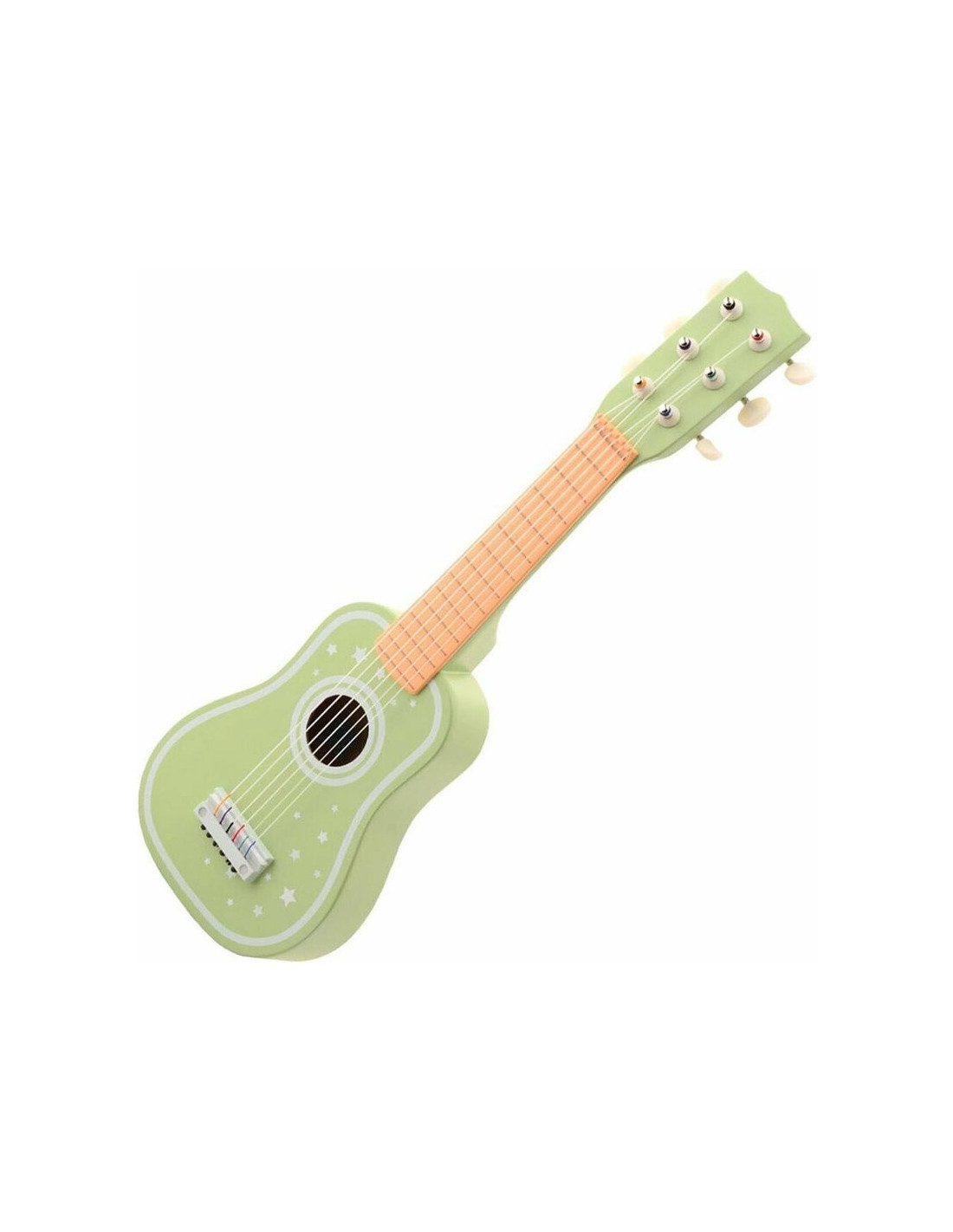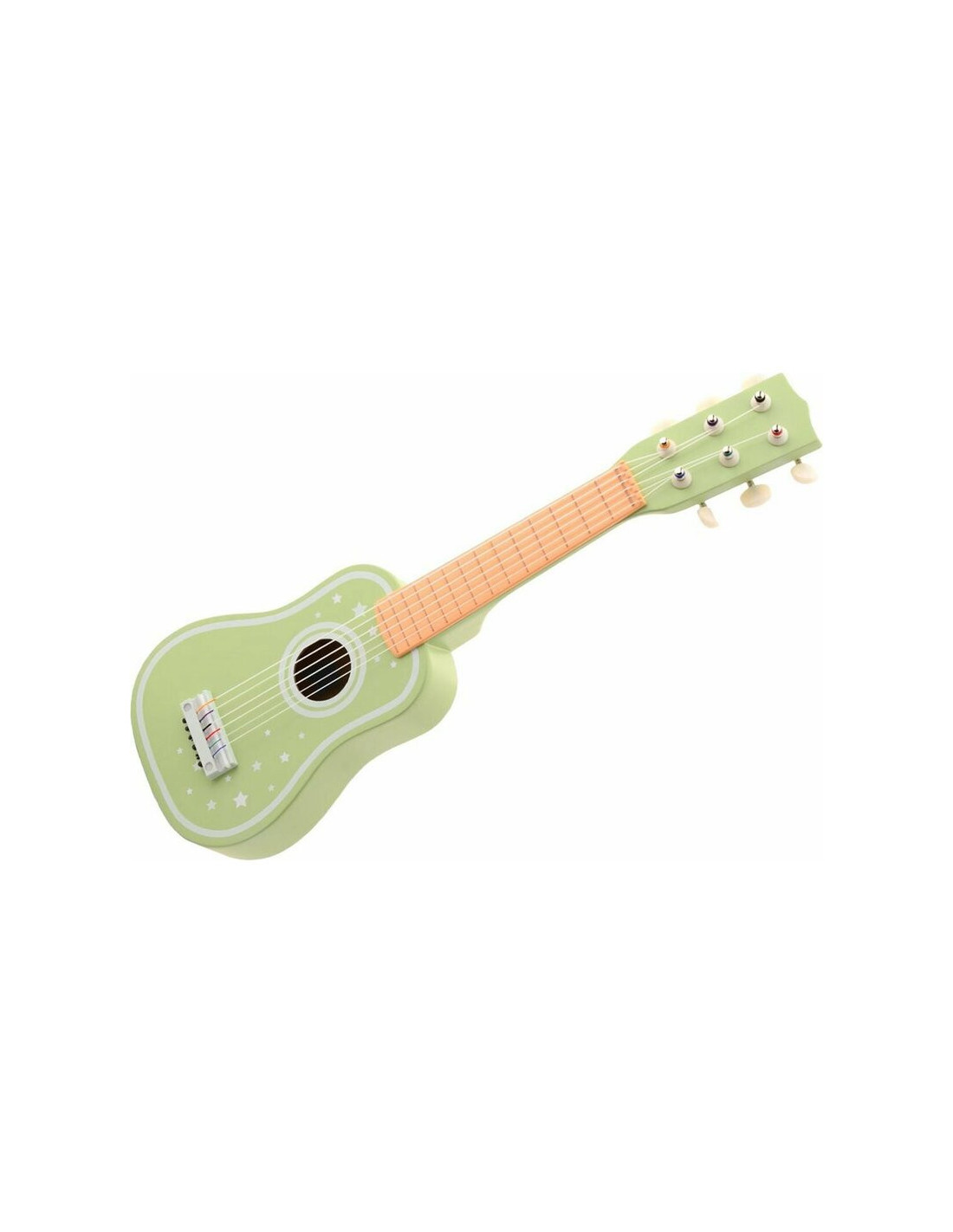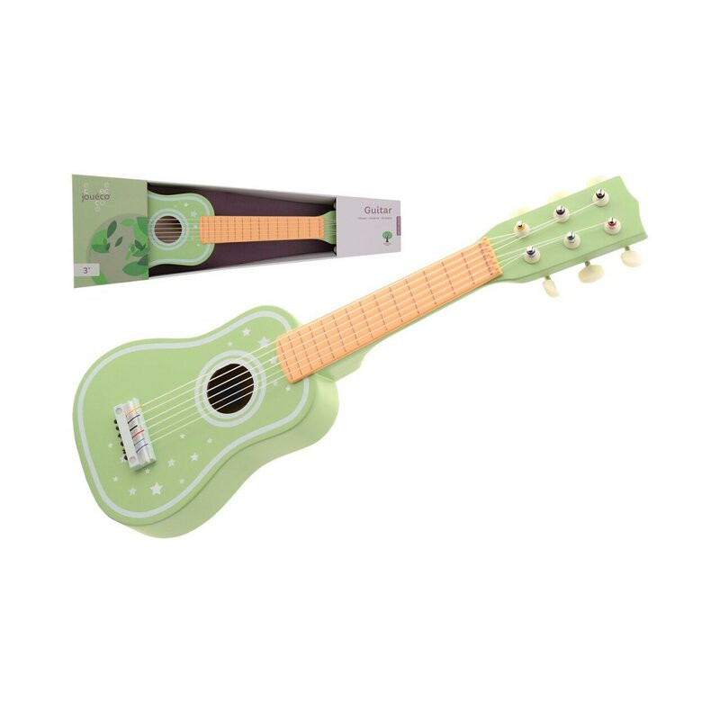 Joueco - Chitara din lemn certificat FSC, Cu 6 corzi, Stimuleaza creativitatea, Dezvolta coordonarea motrica, 54 x 18.5 cm, 3 ani+, Verde