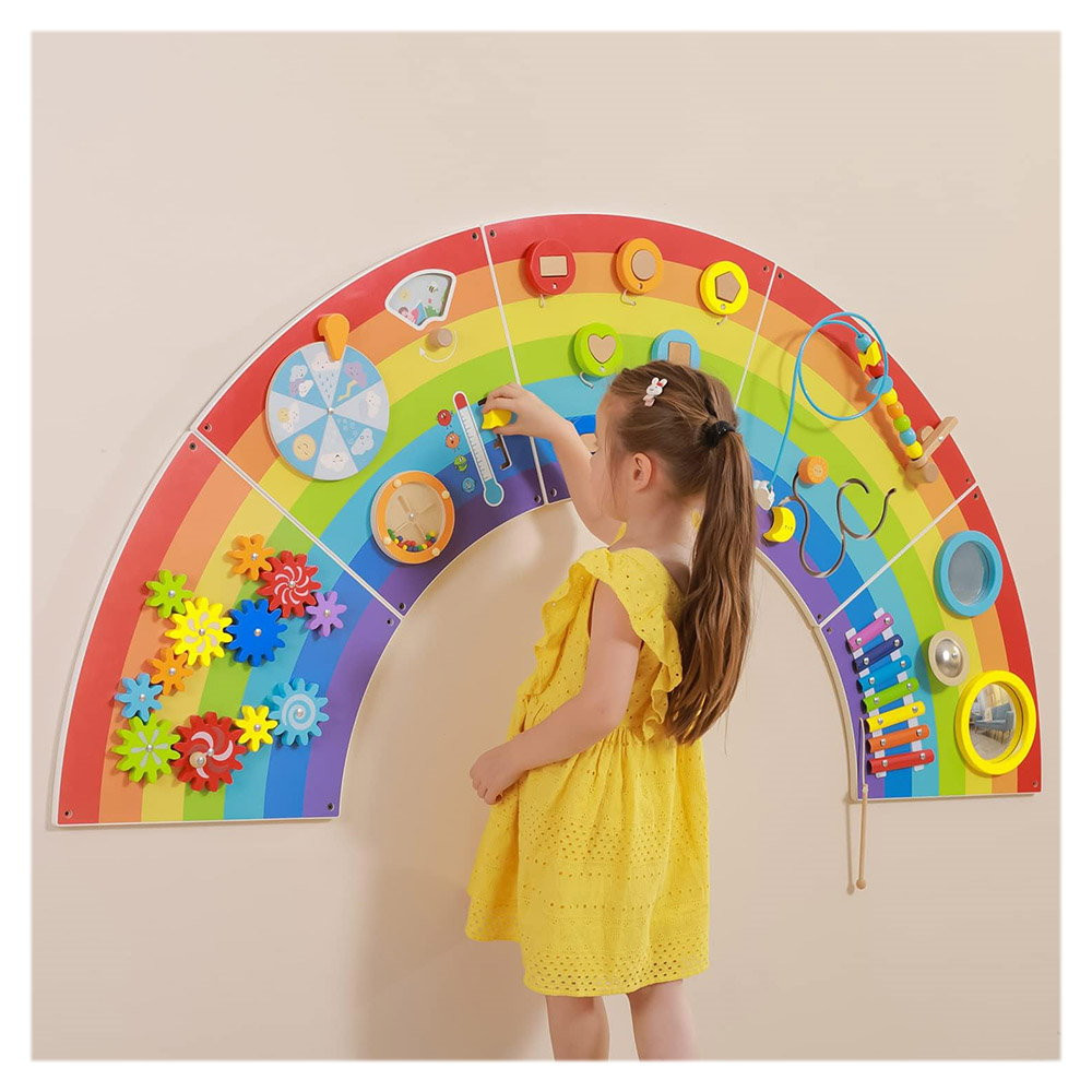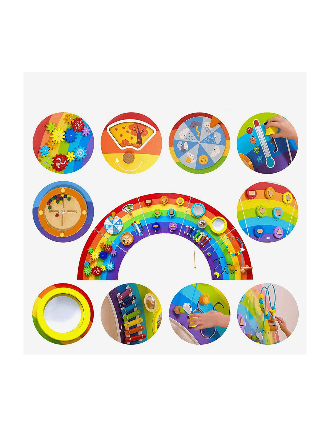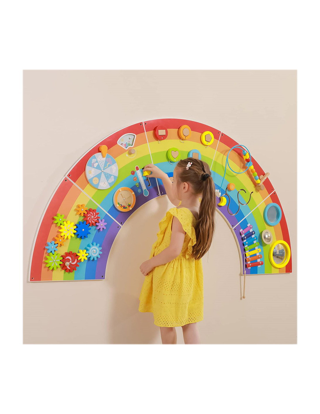 - Copiii vor fi captivati de aceasta jucarie multifunctionala de perete sub forma unui curcubeu, ce le ofera mai multe activitati care ii vor amuza si tine ocupati pentru multa vreme.