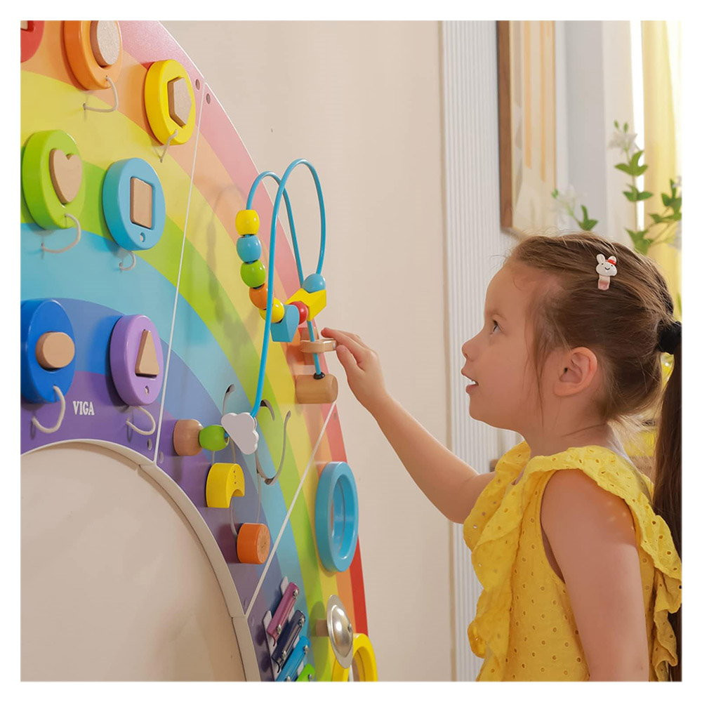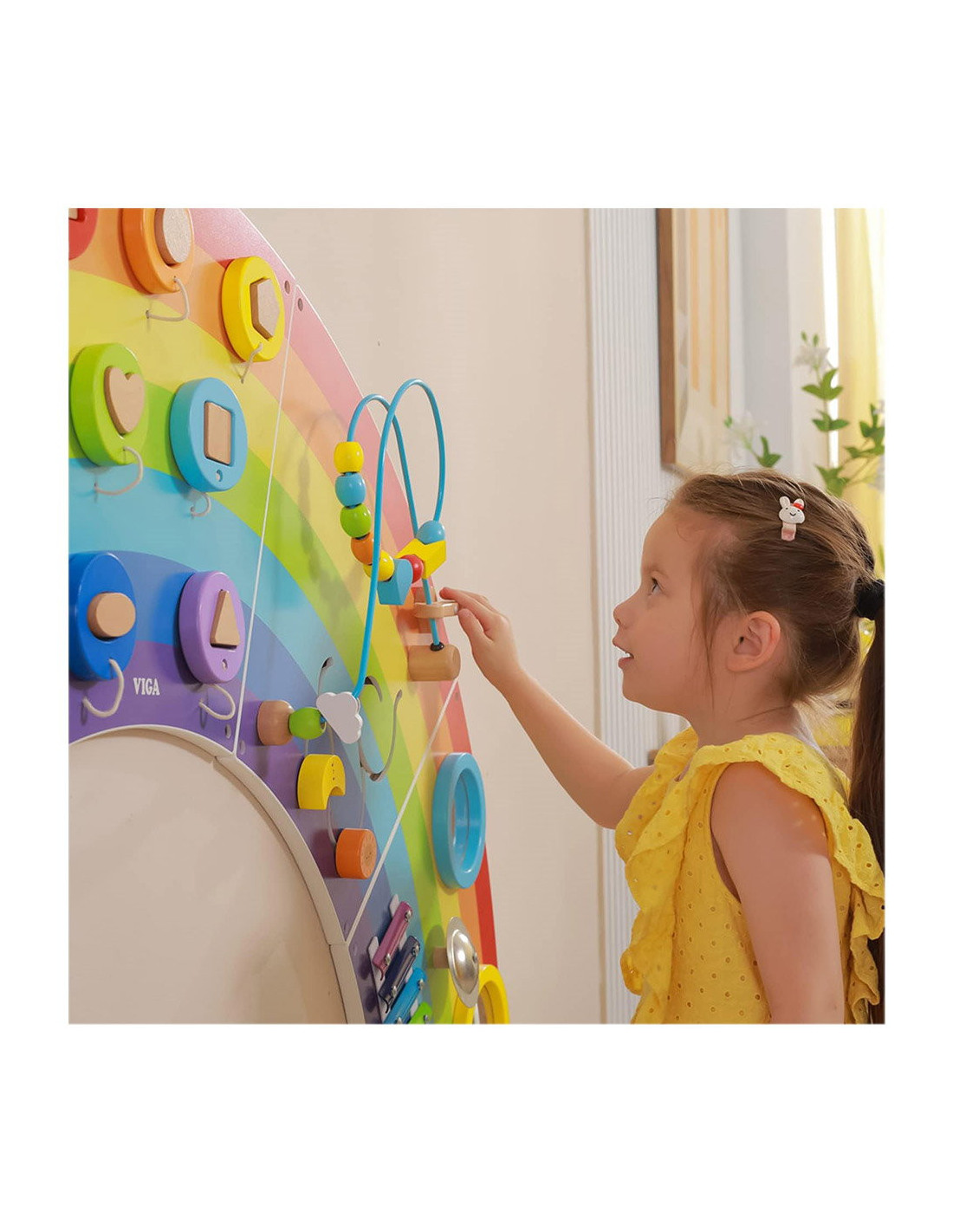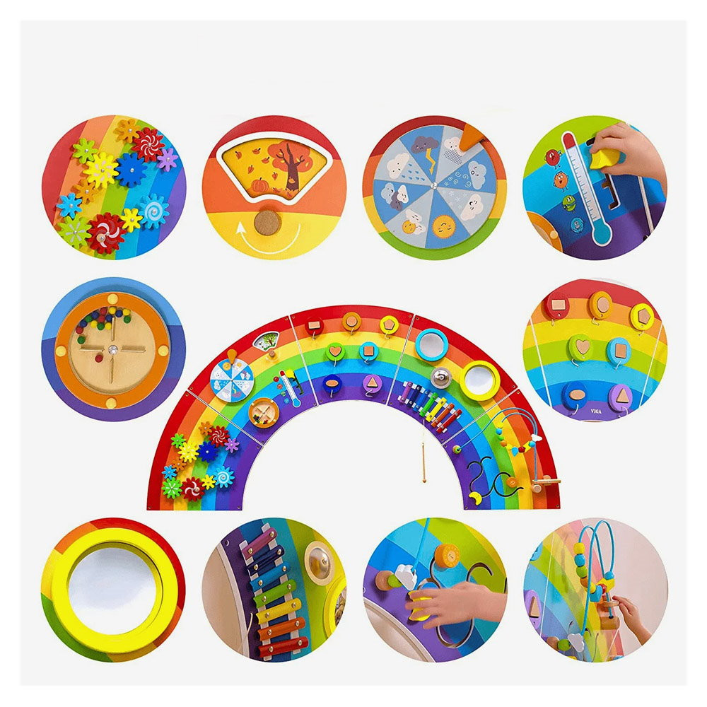 - Copiii vor fi captivati de aceasta jucarie multifunctionala de perete sub forma unui curcubeu, ce le ofera mai multe activitati care ii vor amuza si tine ocupati pentru multa vreme.