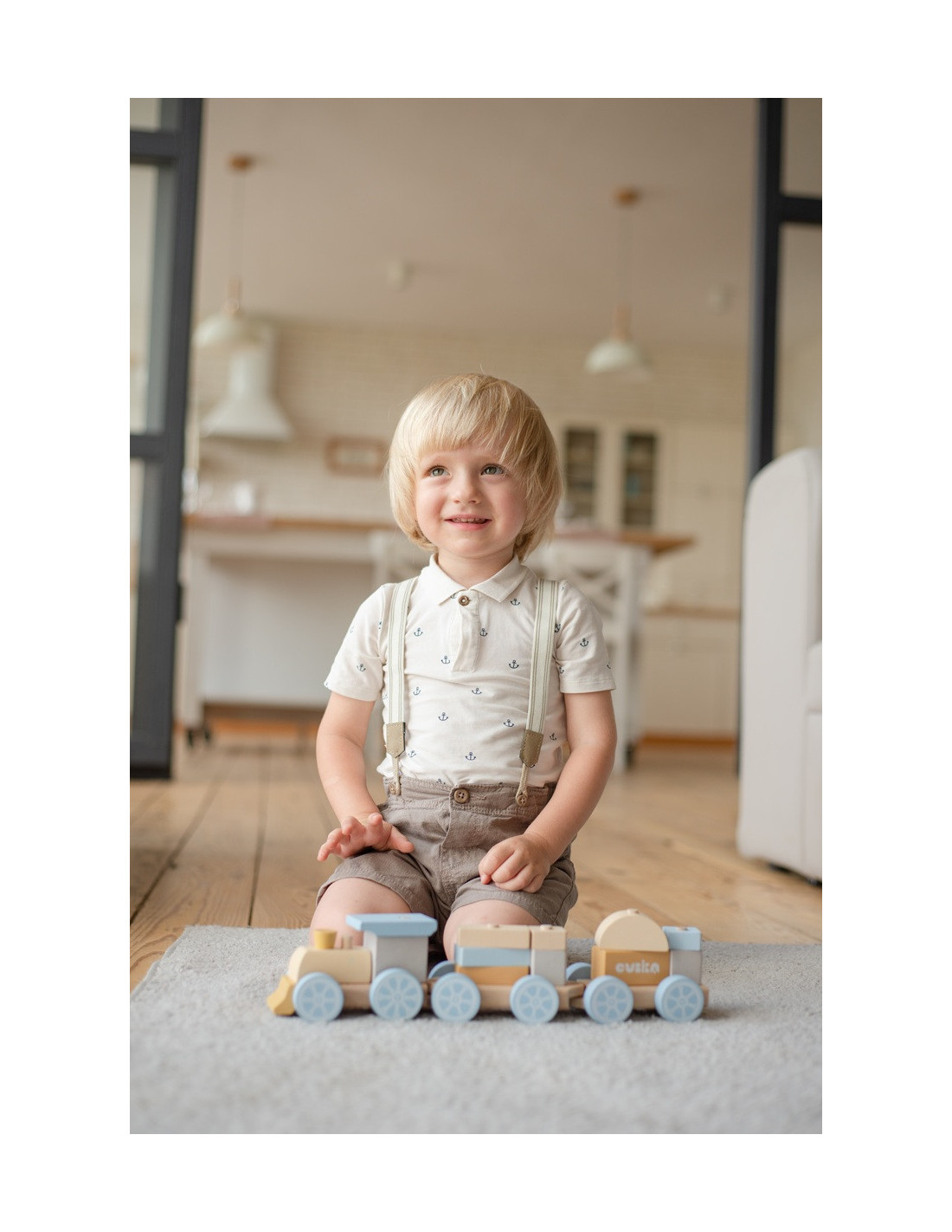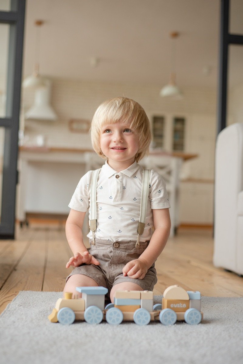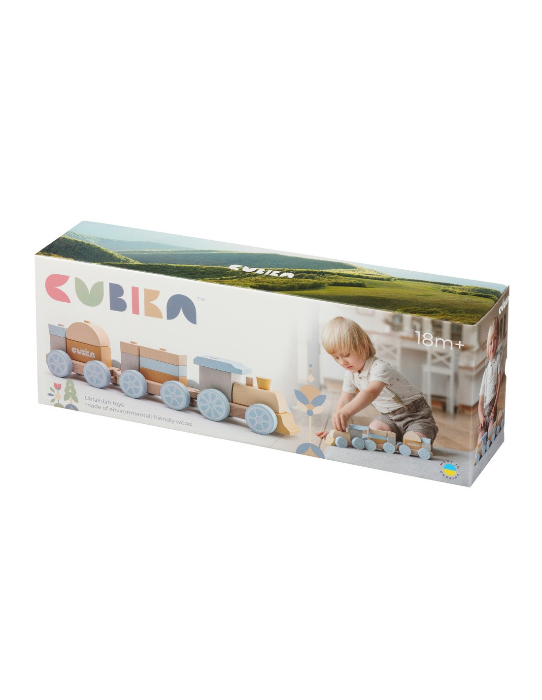 Jucarie din lemn, cubika, trenuletul express - pastel