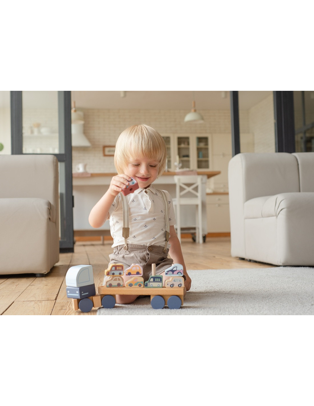Jucarie din lemn, Cubika, Camion pentru masini - Pastel