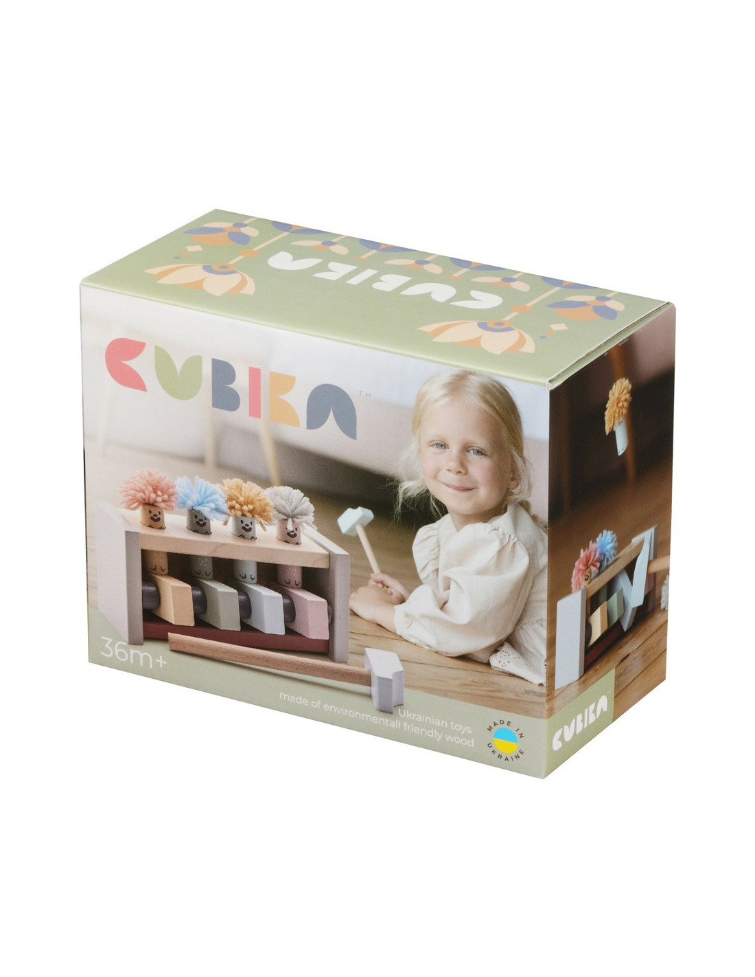 Jucaria din lemn, Cubika – Claunii saritori este un joc complex ce poate ajuta semnificativ copilul tau in procesul de invatare a culorilor si a formelor, sporindu-i dexteritatea, atentia si simtul echilibrului. Jocul ajuta copilul sa invete sa loveasca cu ciocanelul fiecare piesa din cele 4. Fiecare lovitura reusita este sarbatorita cu un claun care sare, spre marea satisfactie a copilului tau. Jocul ajuta la dezvoltarea deprinderilor motorii si a gandirii logice. Distractia este garantata cu aceasta jucarie!