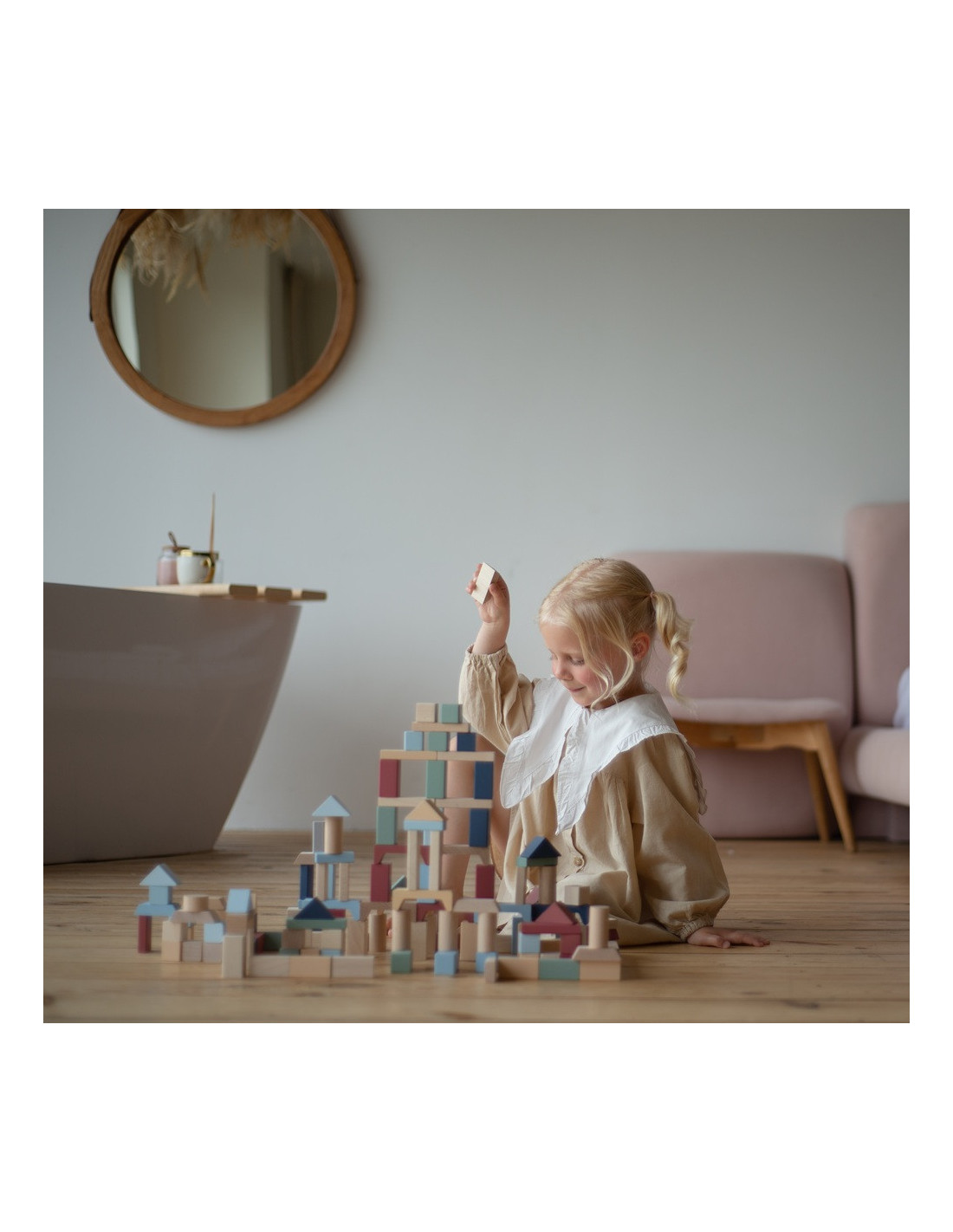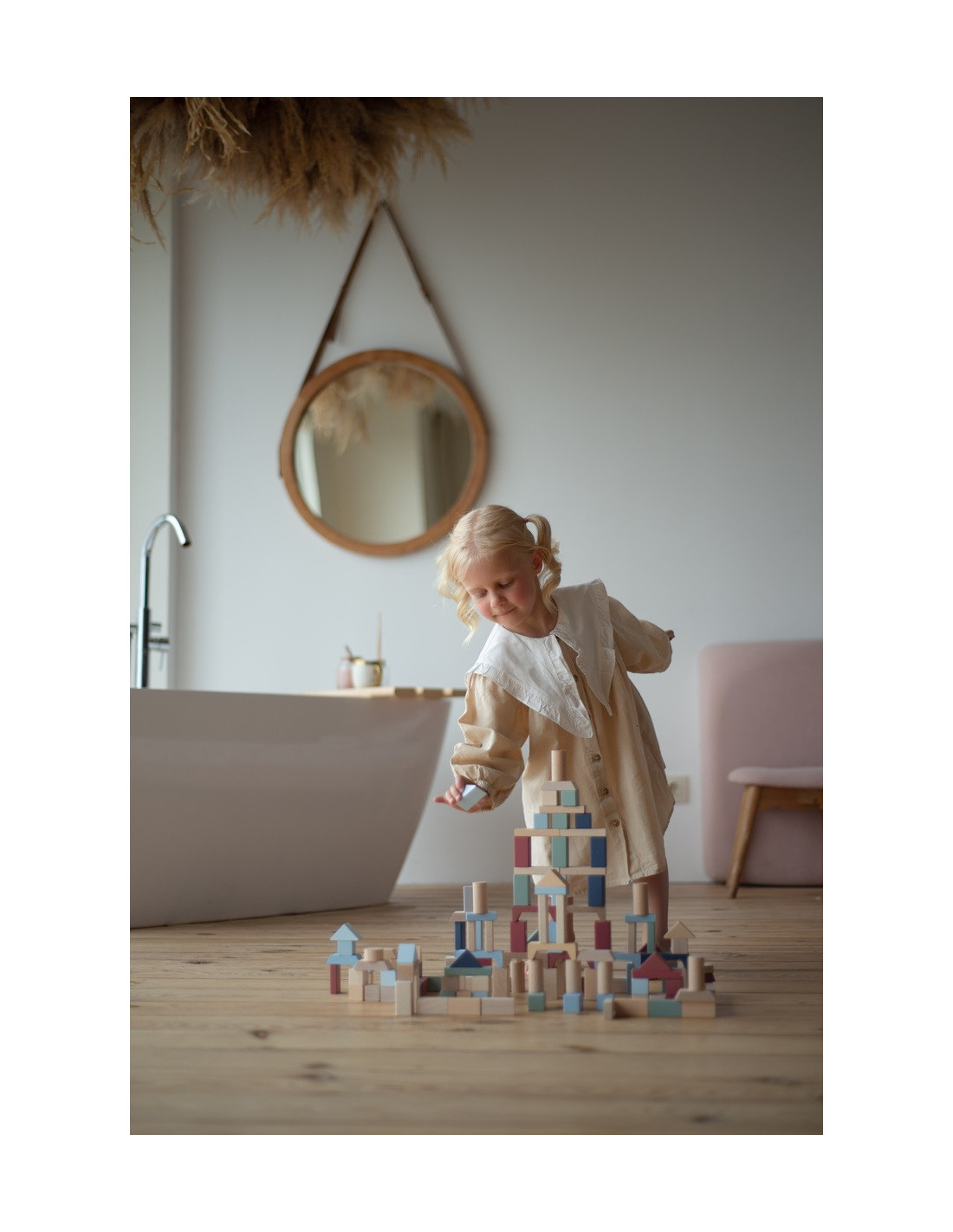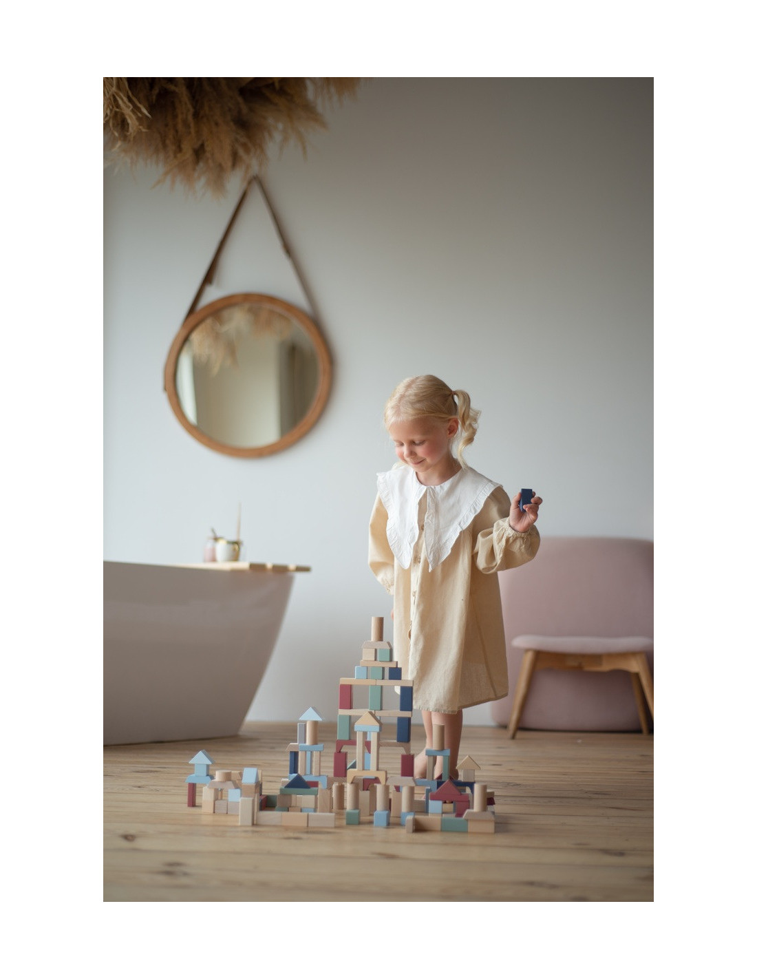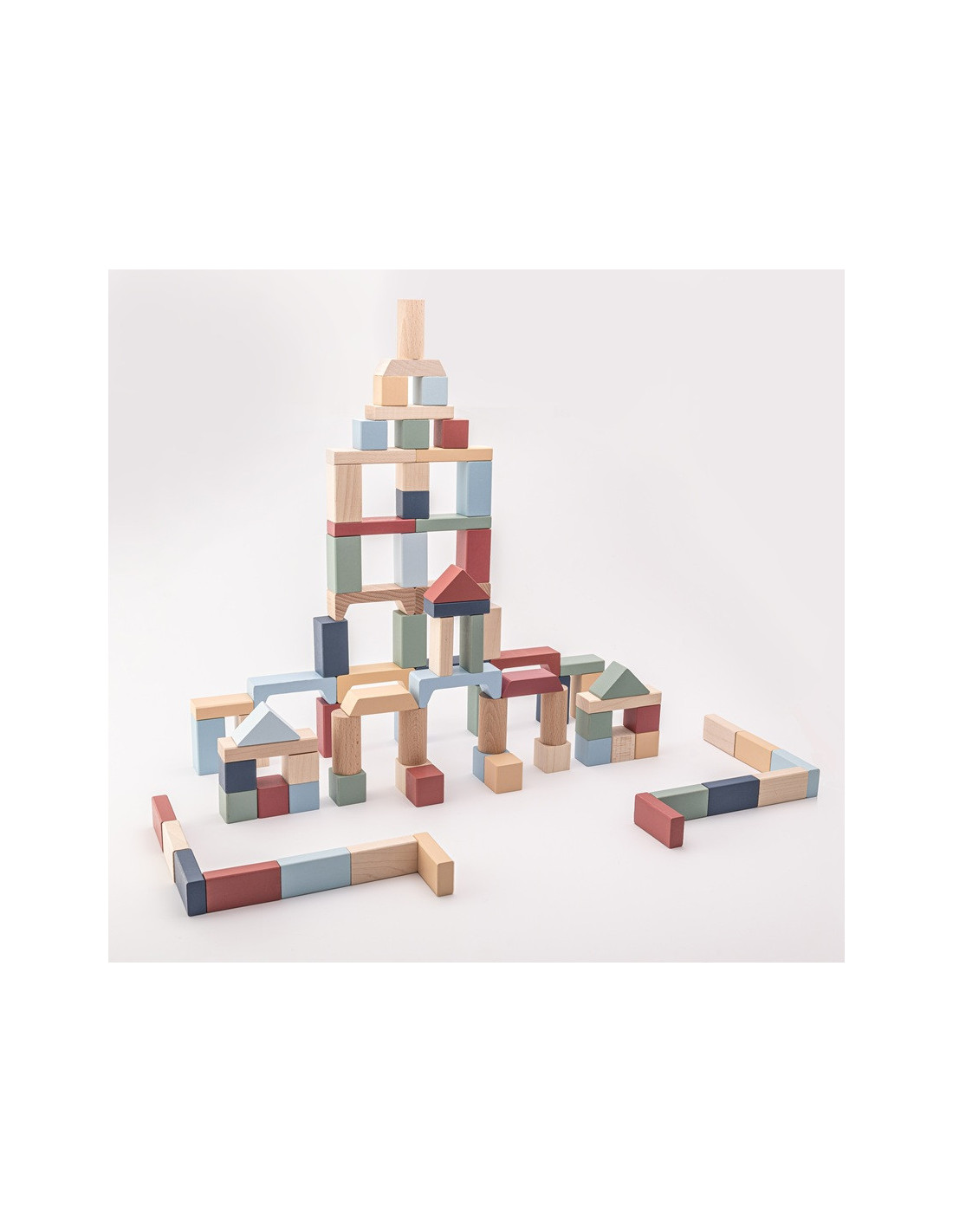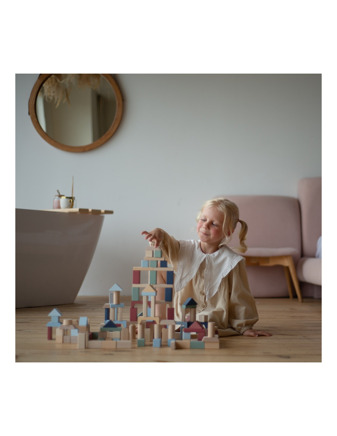 Jucarie din lemn, Cubika, Kit 100 de piese de constructie - Pastel