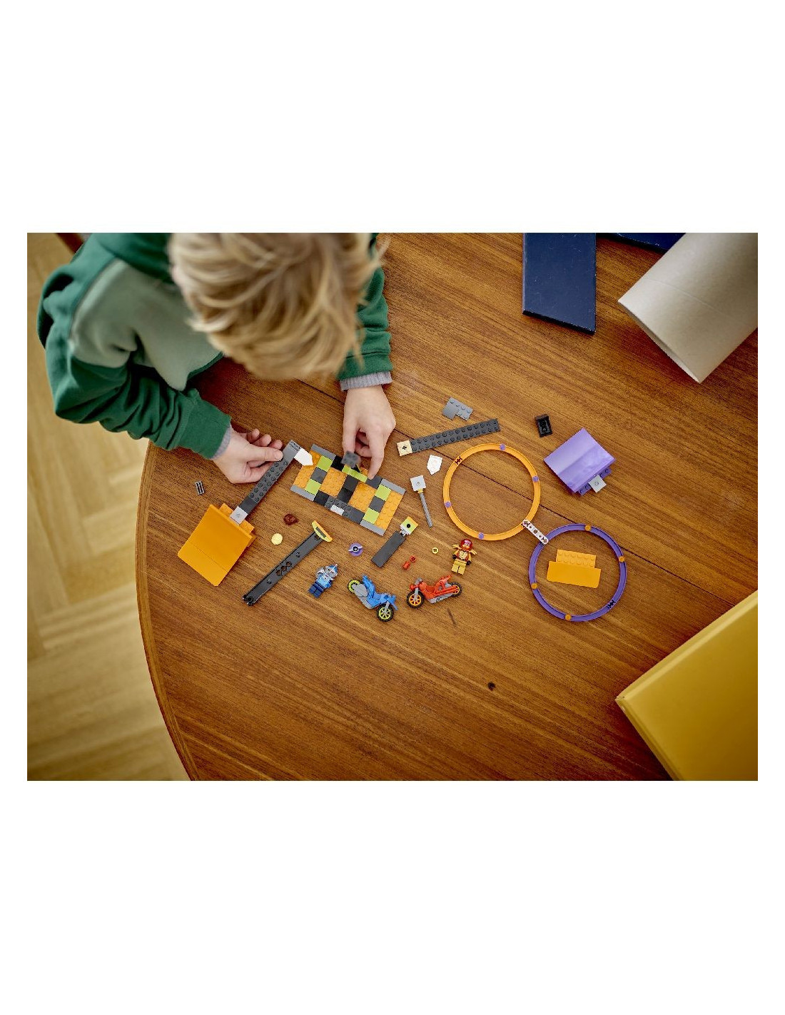 Adauga cei 2 soferi de motocicleta LEGO City Stuntz si da drumul la distractie.Setul include un ghid de construit ilustrat si aplicatia LEGO Builder - un mentor digital cu unelte intuitive de marire si rotire, permite copiilor sa vizualizeze modelele din toate unghiurile in timp ce construiesc.Jucariile LEGO City transporta copiii in mijlocul actiunii, cu vehicule realiste, structuri bogate in detalii si personaje inspirationale pentru o joaca de roluri distractiva.