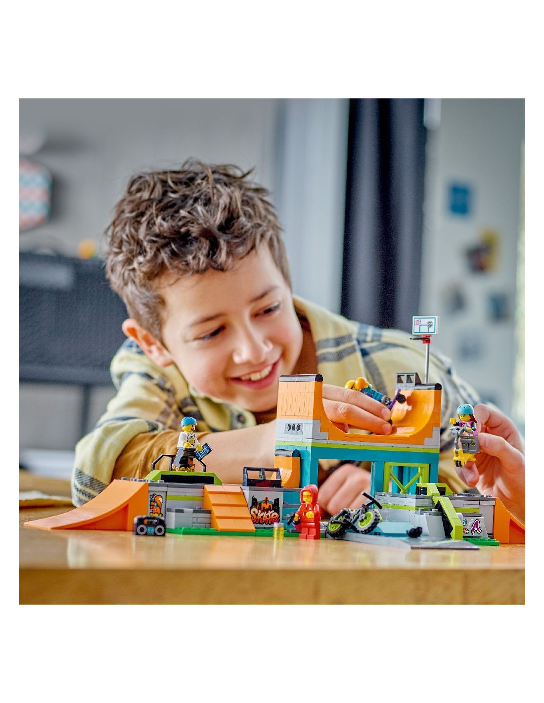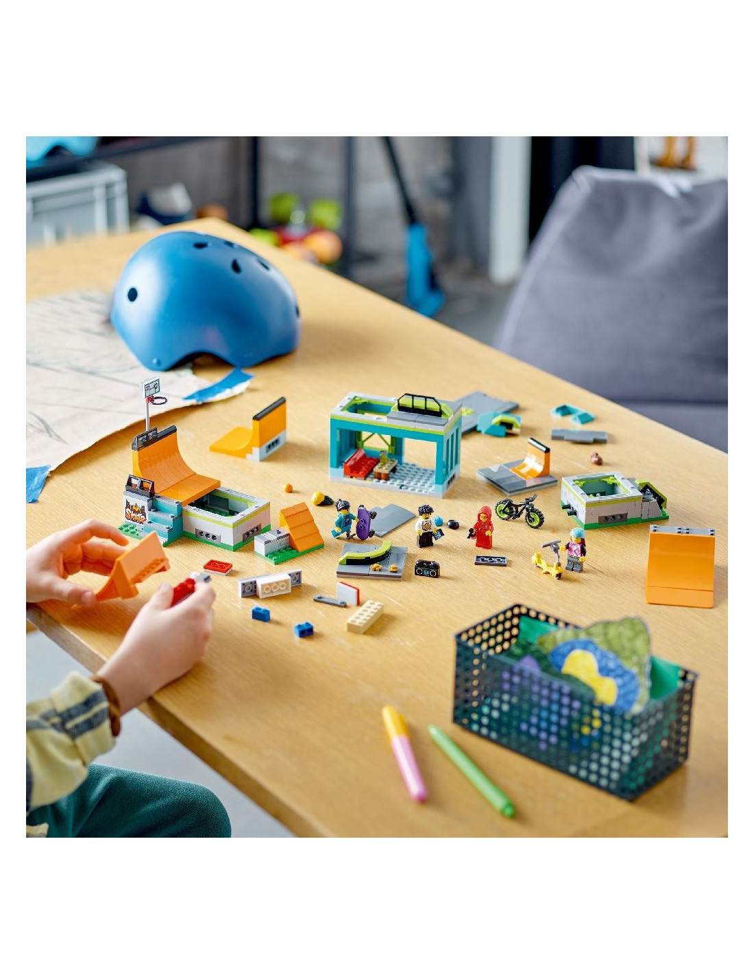 De asemenea, include o bicicleta BMX, un skateboard, un scuter, patine cu rotile, 4 minifigurine practicant+u00a0de skateboard si o Placa de drum LEGO pentru conectarea cu alte seturi din gama LEGO City.Acest set includeun ghid tiparit de constructie usor de urmat si instructiuni digitale in aplicatia LEGO Builder.