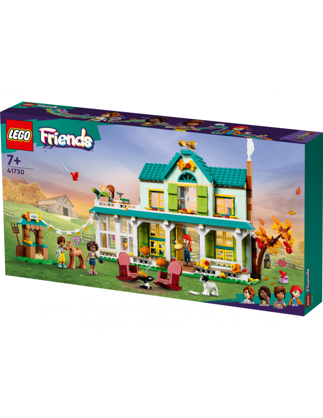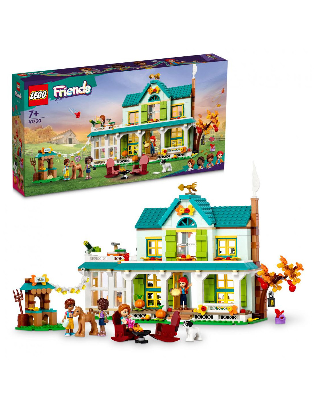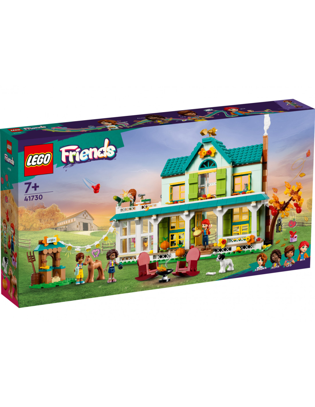 Descopera o casa cu multi prieteni pentru copiii de 7+ ani prin acest set LEGO® Friends Casa lui Autumn (41730). Copiii vor adora s-o cunoasca pe amabila Autumn. Aceasta i-a invitat pe prietenii Leo si Aliya si a planificat activitati pentru toata lumea. Fanii gatitului il pot ajuta pe Leo sa culeaga mere si sa coaca o placinta in bucatarie. intre timp, micii iubitori de animale i se pot alatura Aliyei ca sa-l ingrijeasca pe noul manz. Casa are multe camere de explorat, incluzand o bucatarie, o sufragerie primitoare, o zona de dining, o baie si dormitorul inspirat de natura al lui Autumn. si la exterior spatiul e generos, cuprinzand un balcon cu un telescop, o agenda si un binoclu, unde prietenii pot iesi ca sa observe pasari.
