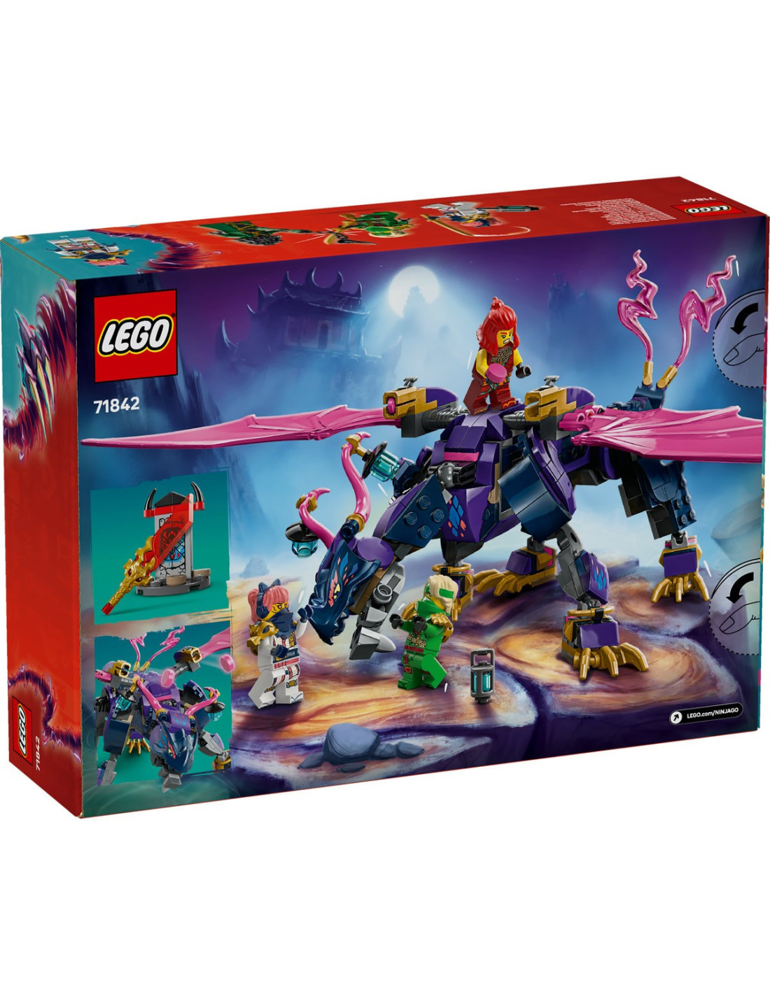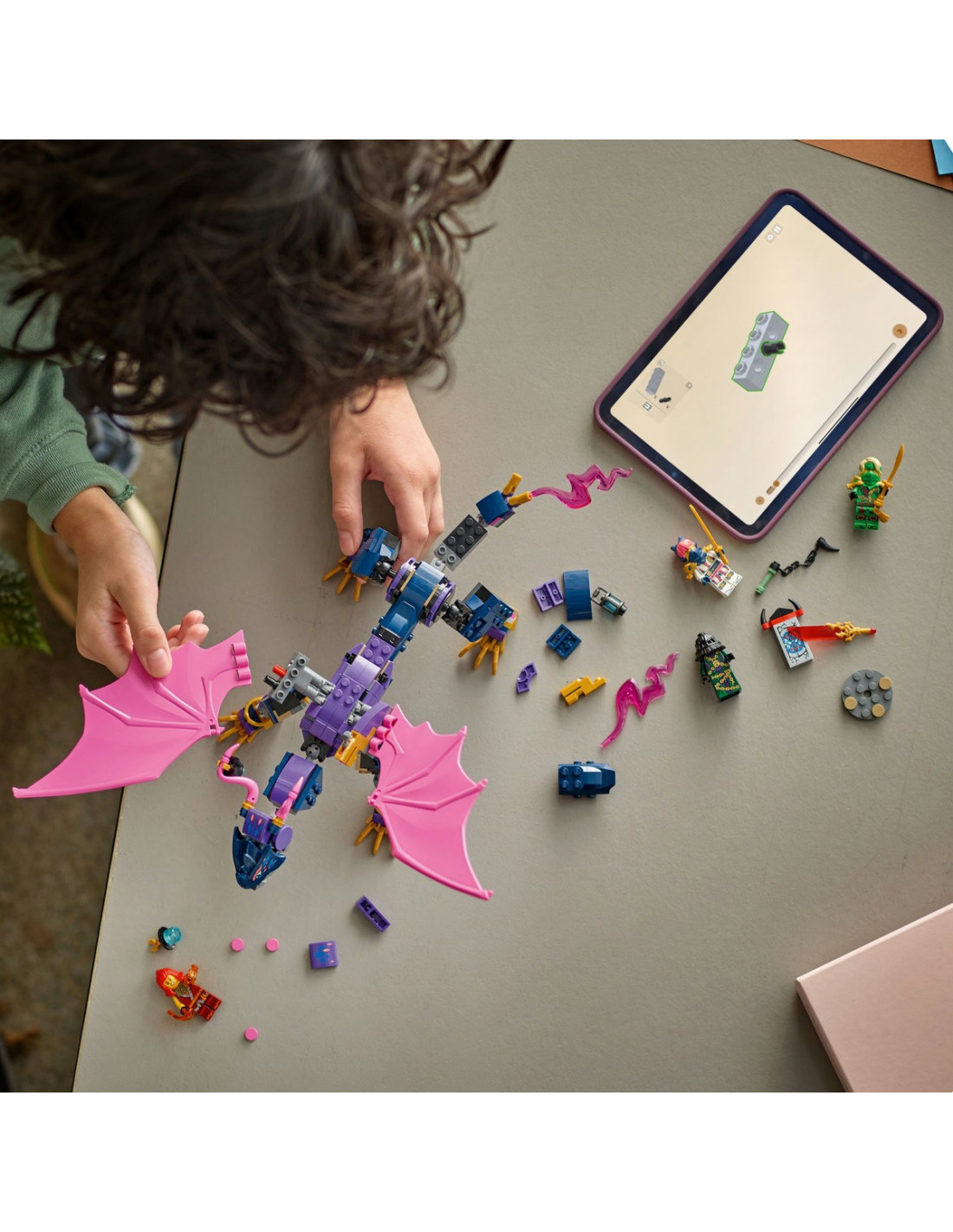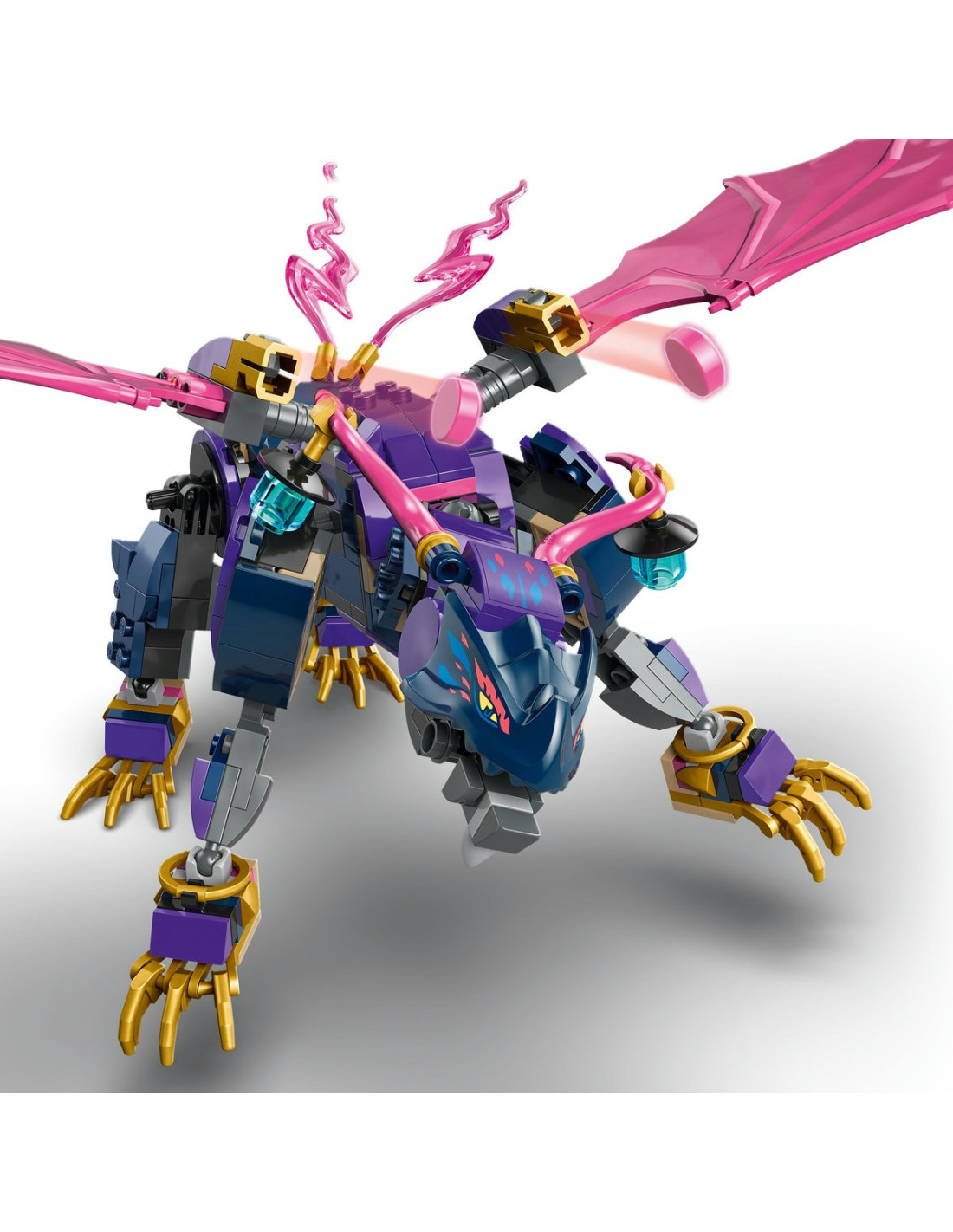 Acest set de constructie pentru copii include un dragon cu coada, picioare, aripi, cap si maxilar articulate, 2 pozitii pentru a aseza o minifigurina pe spatele sau si un lansator de piroane sub fiecare aripa.4 minifigurine NINJAGO sunt incluse in setul LEGO razboinicii ninja Lloyd, Sora si Wyldfyre, fiecare echipat cu o arma ninja, plus Maestrul Ghinionului Zarkt.