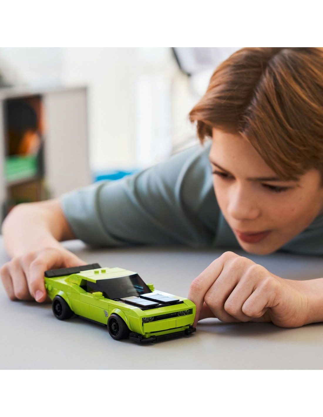 Masina fortoasa pentru copii Baietii si fetele de 9 ani si mai mari pot construi, etala si porni in curse cu Masina sport Dodge Challenger SRT Hellcat, din tema LEGO Speed Champions.