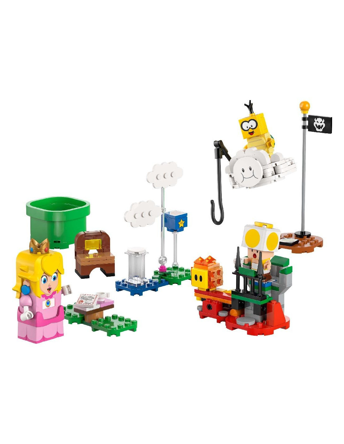 Alatura-te unui personaj Super Mario&trade emblematic la un picnic si zboara pe un nor pentru a-l salva pe Yellow Toad cu setul Aventuri cu LEGO® Peach&trade interactiva (71441).