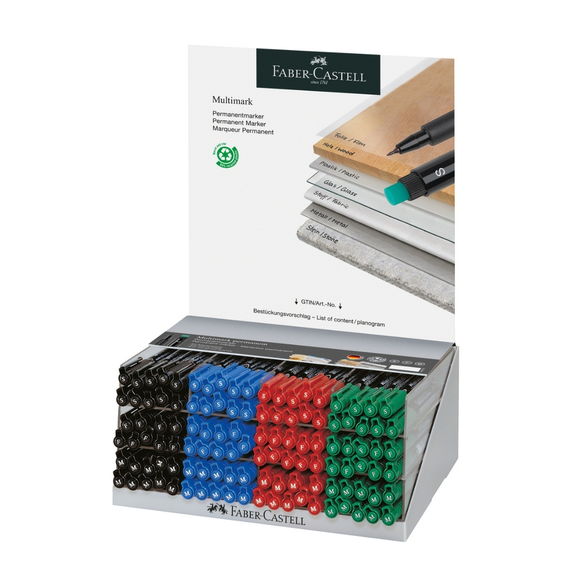 Display 120 buc x Marker permanent multimark Faber-Castell, F, S, M – 4 culori asortate